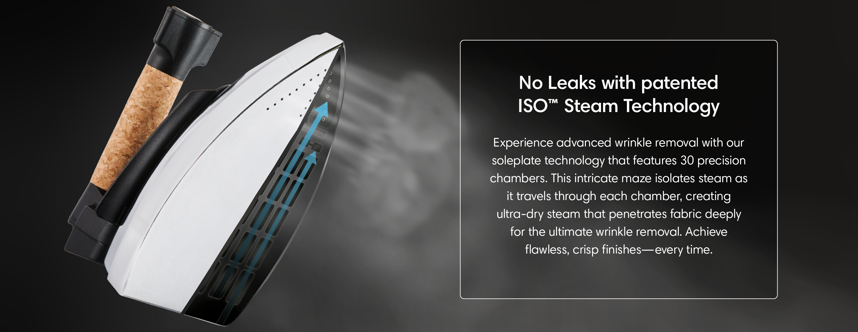 Paired with the 4100IR steam iron featuring our patented ISO™ Steam Technology, the 6000BU/4100IR delivers ultra-dry steam through a 30-chamber soleplate designed to deeply penetrate fabric for flawless, crisp finishes—every time. The 6000BU is for those who demand the very best performance but don’t require more than 4.5L capacity.