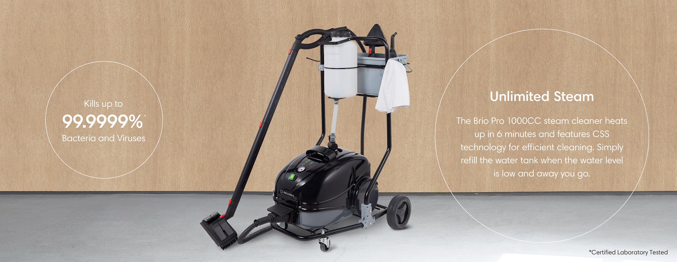 Steam deodorizes and sanitizes with heat and moisture and since the only ingredient required for the Brio Pro 1000CC is water, cleaning your home has never been safer, healthier or more environmentally friendly. Just add water!