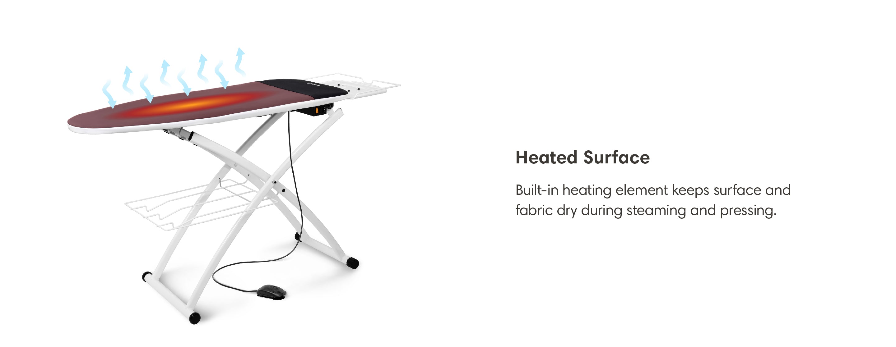 Heated Surface Keeps Surface and Clothes Dry During Steaming and Pressing