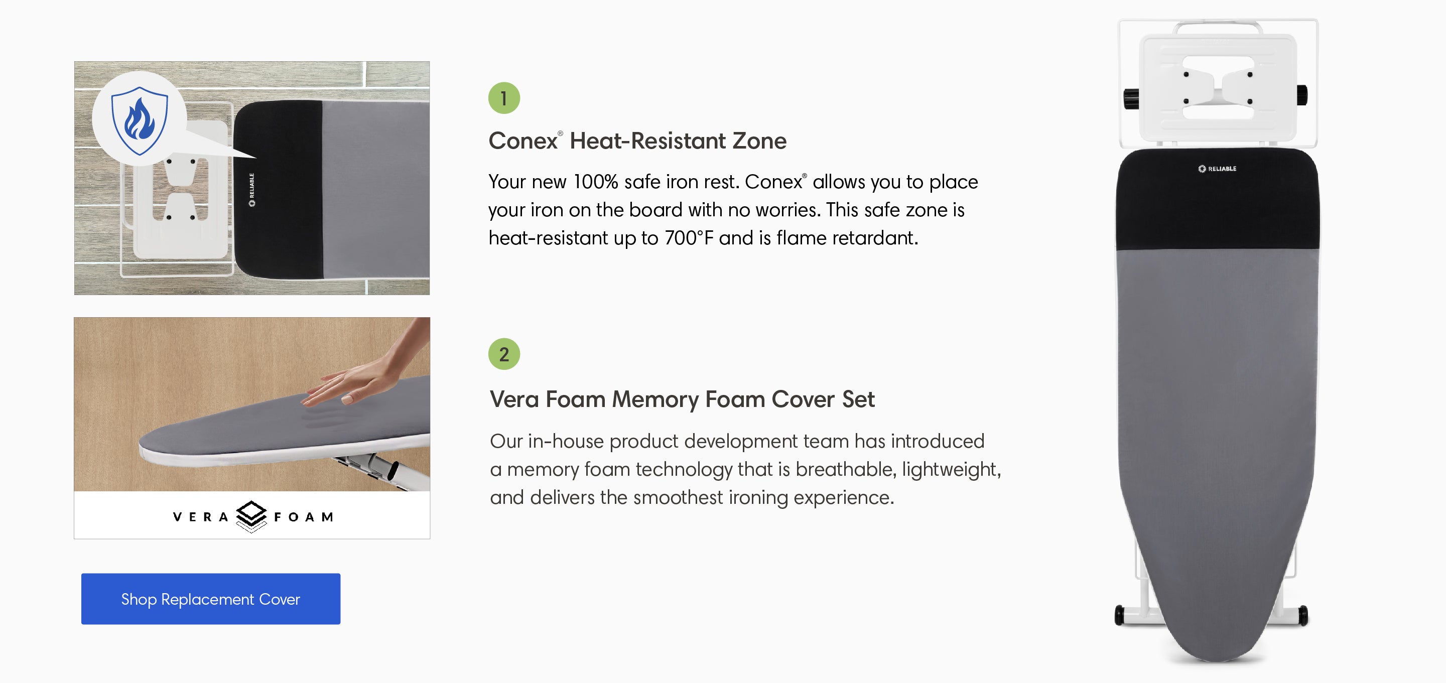 Vera Foam Memory Foam Cover Pad for Enhanced Pressing Experience with Conex® Heat-Resistant Zone for Safe and Effective Ironing