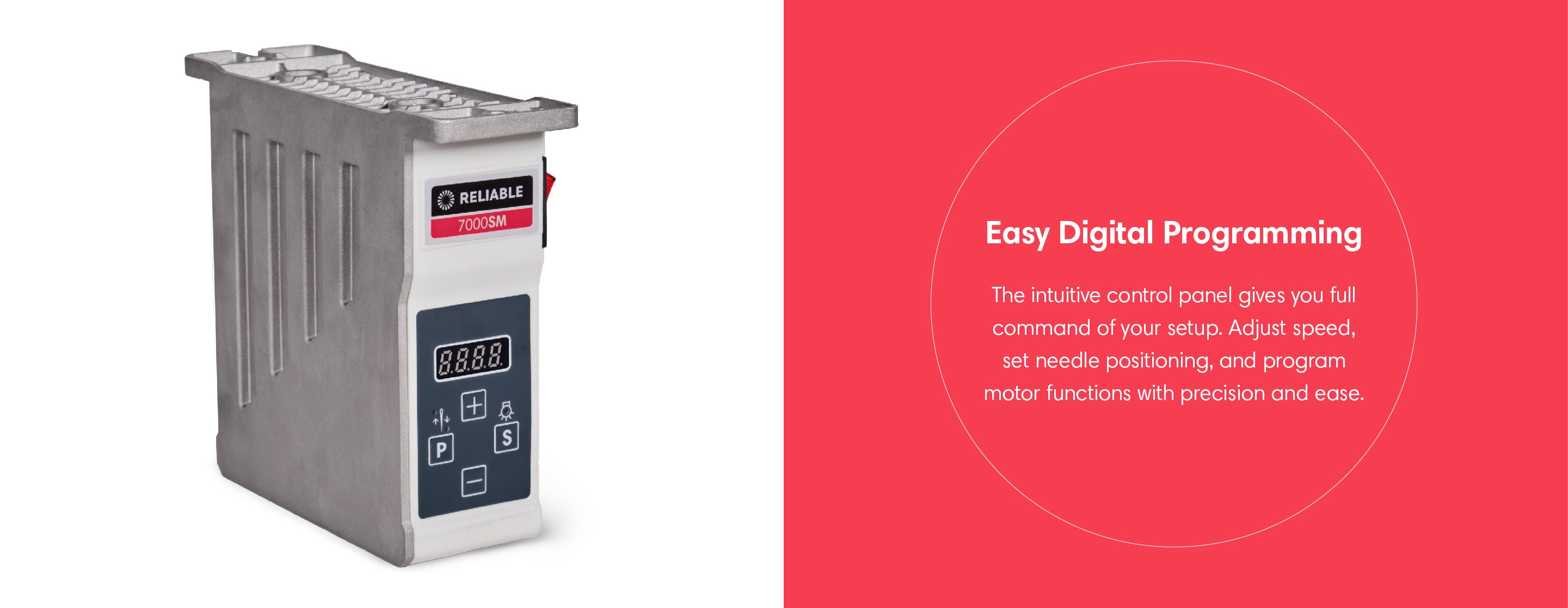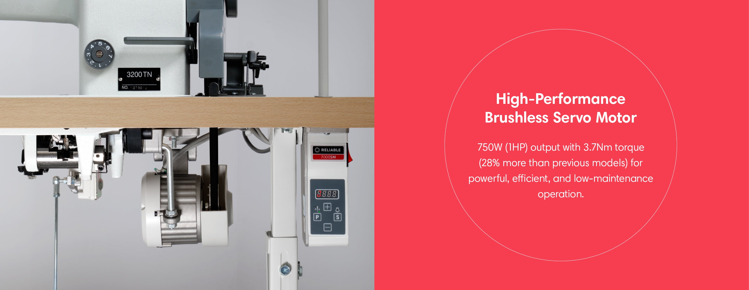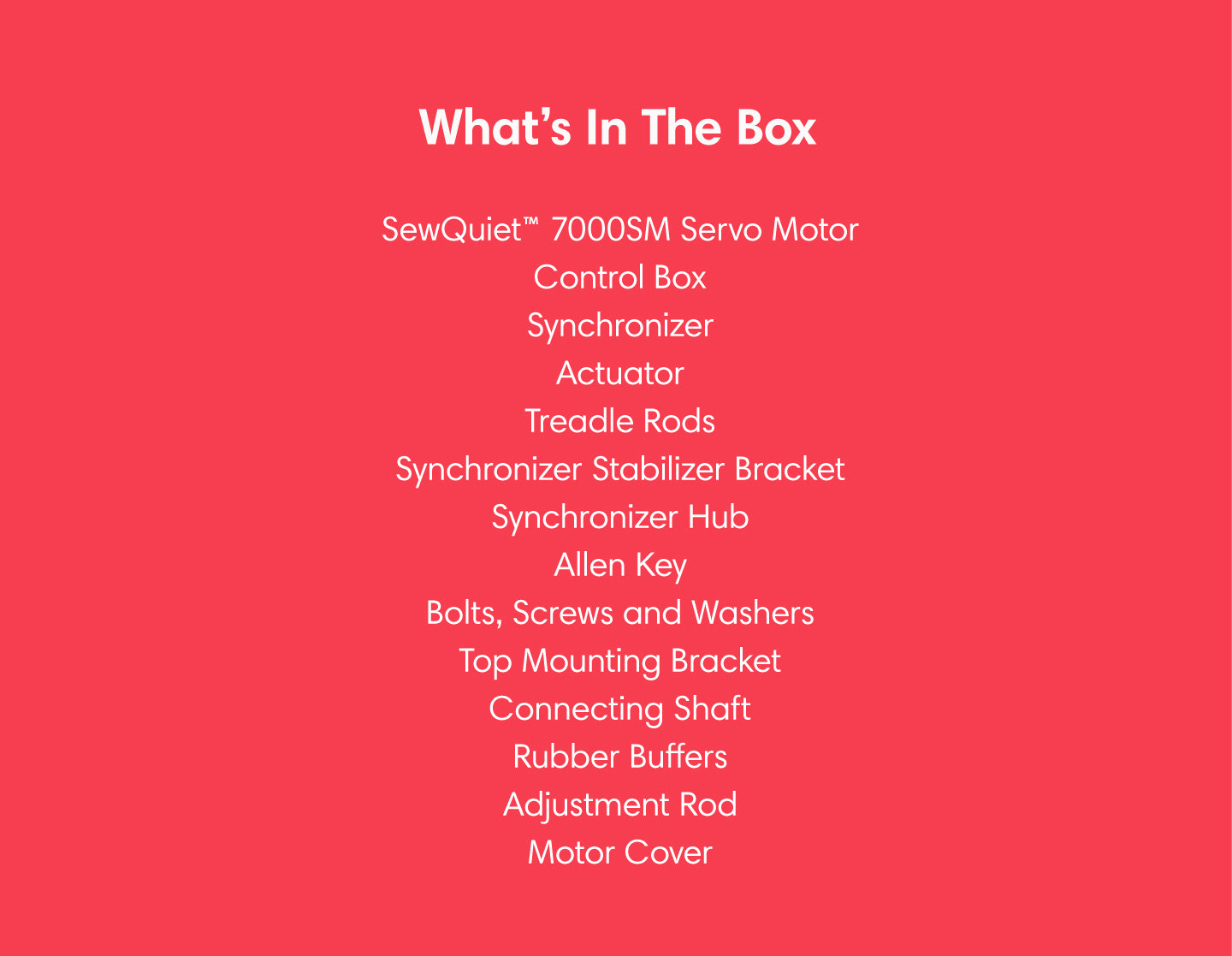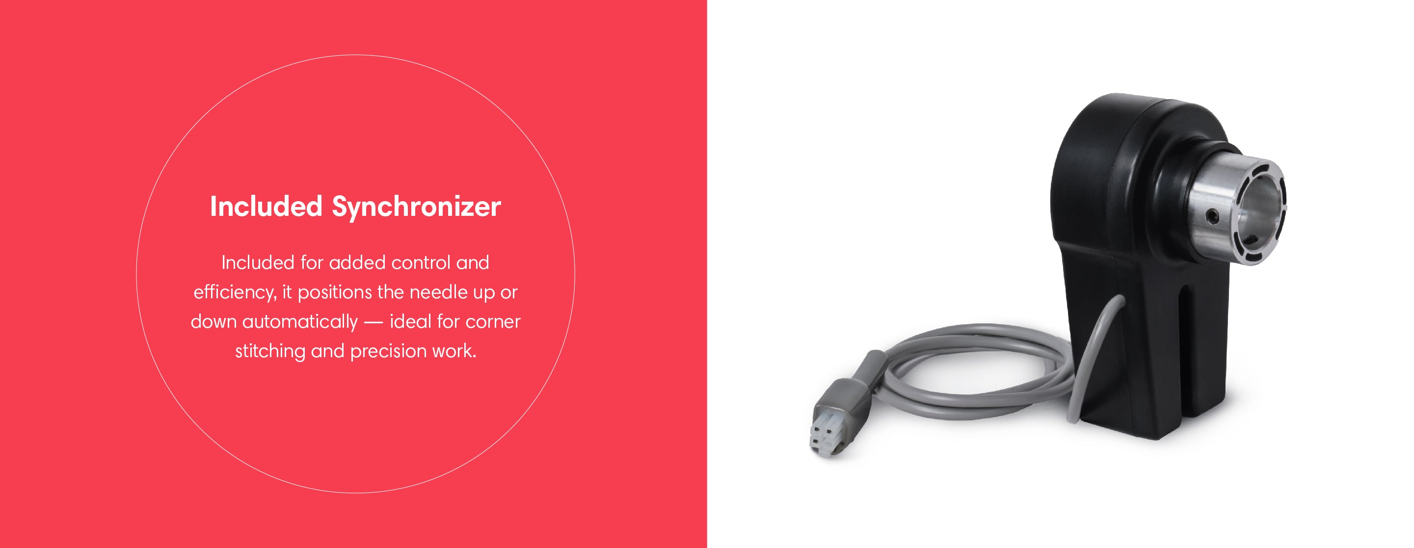 Built for power, precision, and performance, the SewQuiet™ 7000SM is our most advanced servo motor yet. With 750W (1HP) of output and 28% more torque than previous models, it's engineered to handle everything from delicate work to heavy-duty sewing with ease. The included synchronizer ensures consistent needle positioning for better stitch control, while advanced electronics extend the motor's life and reliability.