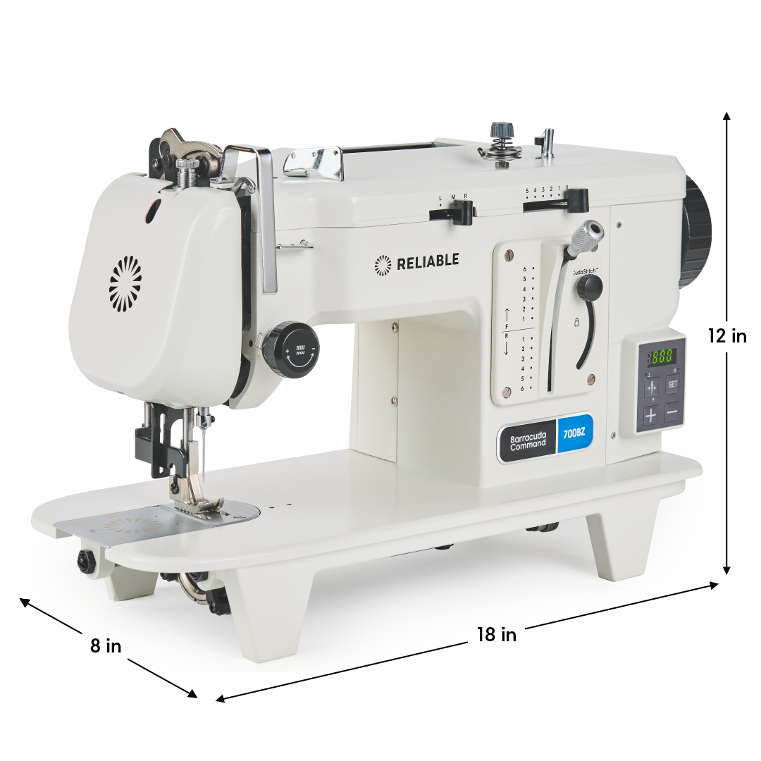 The Barracuda™ Command 700BZ Zig-Zag Sewing machine is built for sailmaking, outdoor gear, and canvas work, delivering power and precision for tough materials. Featuring CudaControl™ technology, its ½ horsepower direct drive motor ensures smooth, quiet operation, while adjustable speeds and a built-in needle positioner provide precise control. Designed for both straight and zig-zag stitching, the 700BZ is perfect for reinforcing seams, sail repairs, and heavy-duty fabric applications. CudaStitch™ guarantees accurate back tacking, while the needle positioner simplifies corner stitching and quick repositioning. Constructed with a durable all-metal body, it’s built to withstand demanding projects while remaining portable. With included accessories and optional CudaCase™ storage, it’s ready to tackle any challenge. Backed by a 3-year limited warranty for added confidence. Power, precision, and versatility—done right.