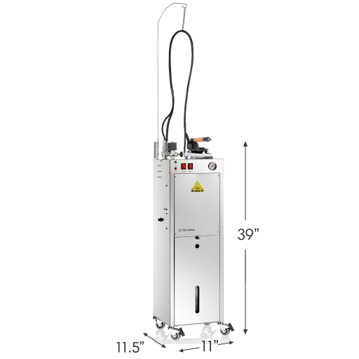 The 9000BU automatic steam boiler is part of a new generation of highly flexible, professional, Made in Italy steam iron stations. Its raison d’être is its ability to go from an external direct water feed to an internal water supply with the provided 5L water container with the turn of a lever inside the unit. Everything else you expect from a Reliable steam cleaner is included: a heavy-duty contactor switch and a blowdown valve to help maintain its life and performance.Paired with the 4100IR steam iron featuring our patented ISO™ Steam Technology, the 9000BU/4100IR delivers ultra-dry steam through a 30-chamber soleplate designed to deeply penetrate fabric for flawless, crisp finishes—every time. The 9000BU is for those who demand the very best performance but don’t require more than 4.5L capacity.