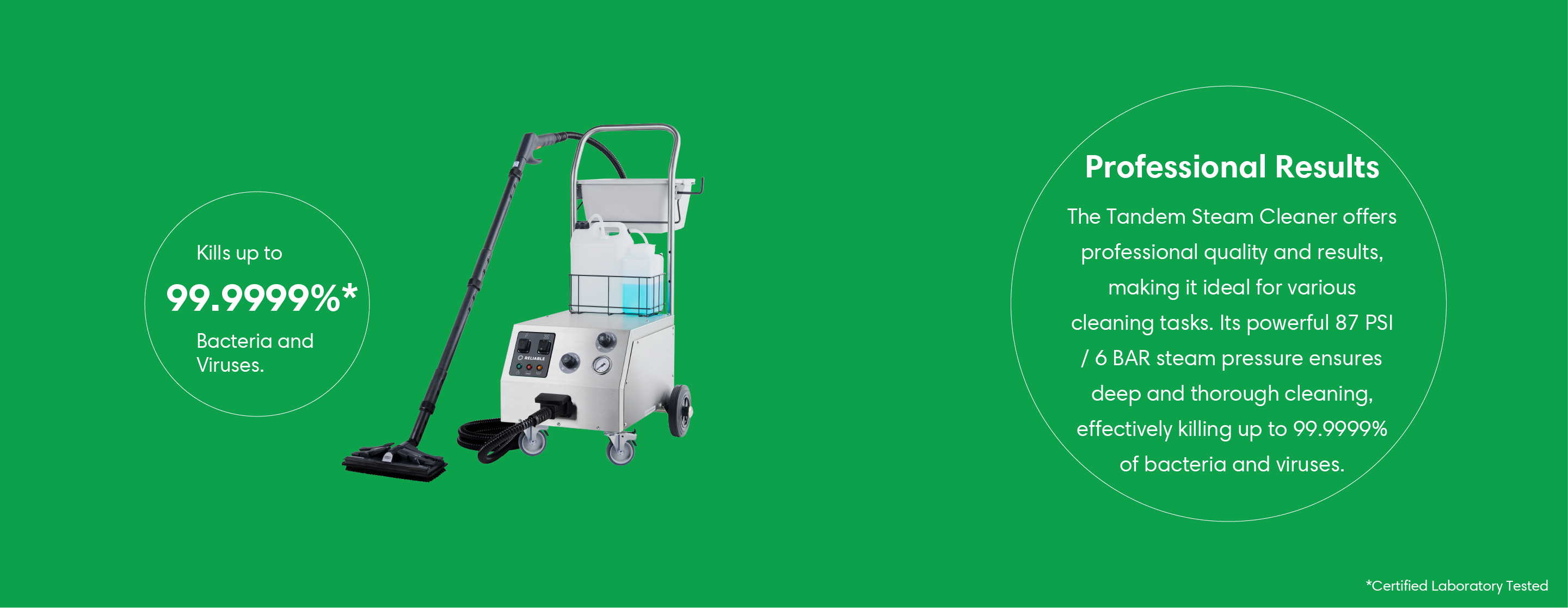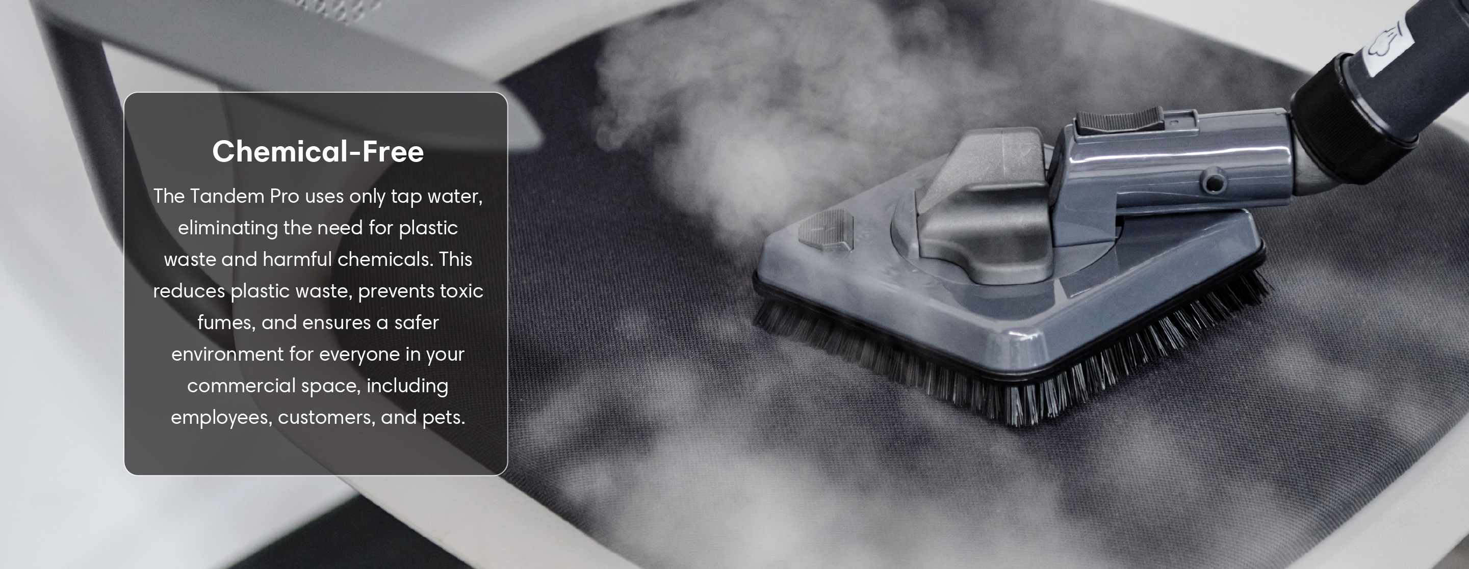 The Tandem Pro is an ideal chemical-free alternative for cleaning and sanitizing all surfaces encountered in commercial cleaning settings yet has the option of using a 2L non-toxic degreasing detergent tank.