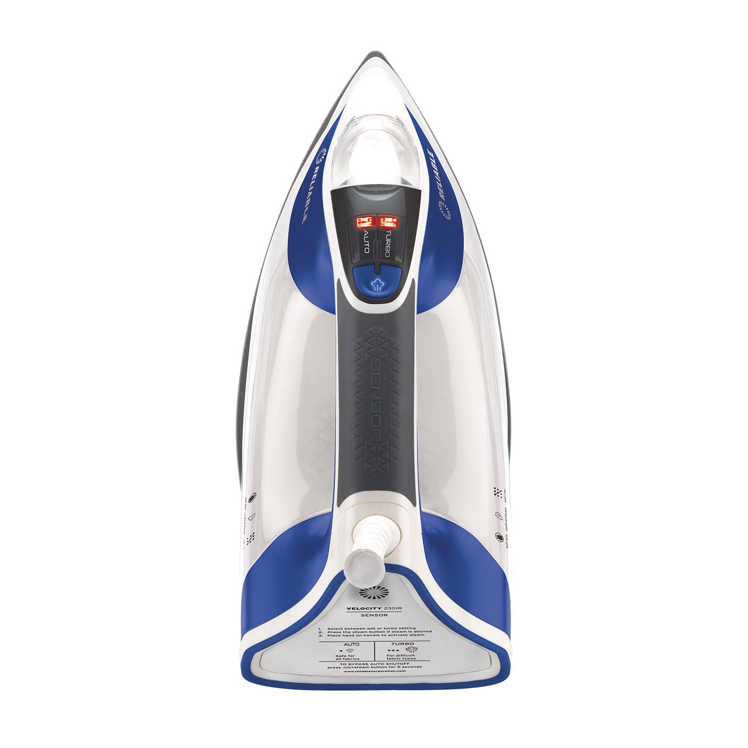 Full of technological features, including the sensor steam handle, the Velocity 240IR is an advanced home iron that can take care of the toughest creases while gentle on delicate fabrics with its auto and turbo settings. The Velocity 240IR’s patented built-in steam generator produces endless continuous steam with no leaks.