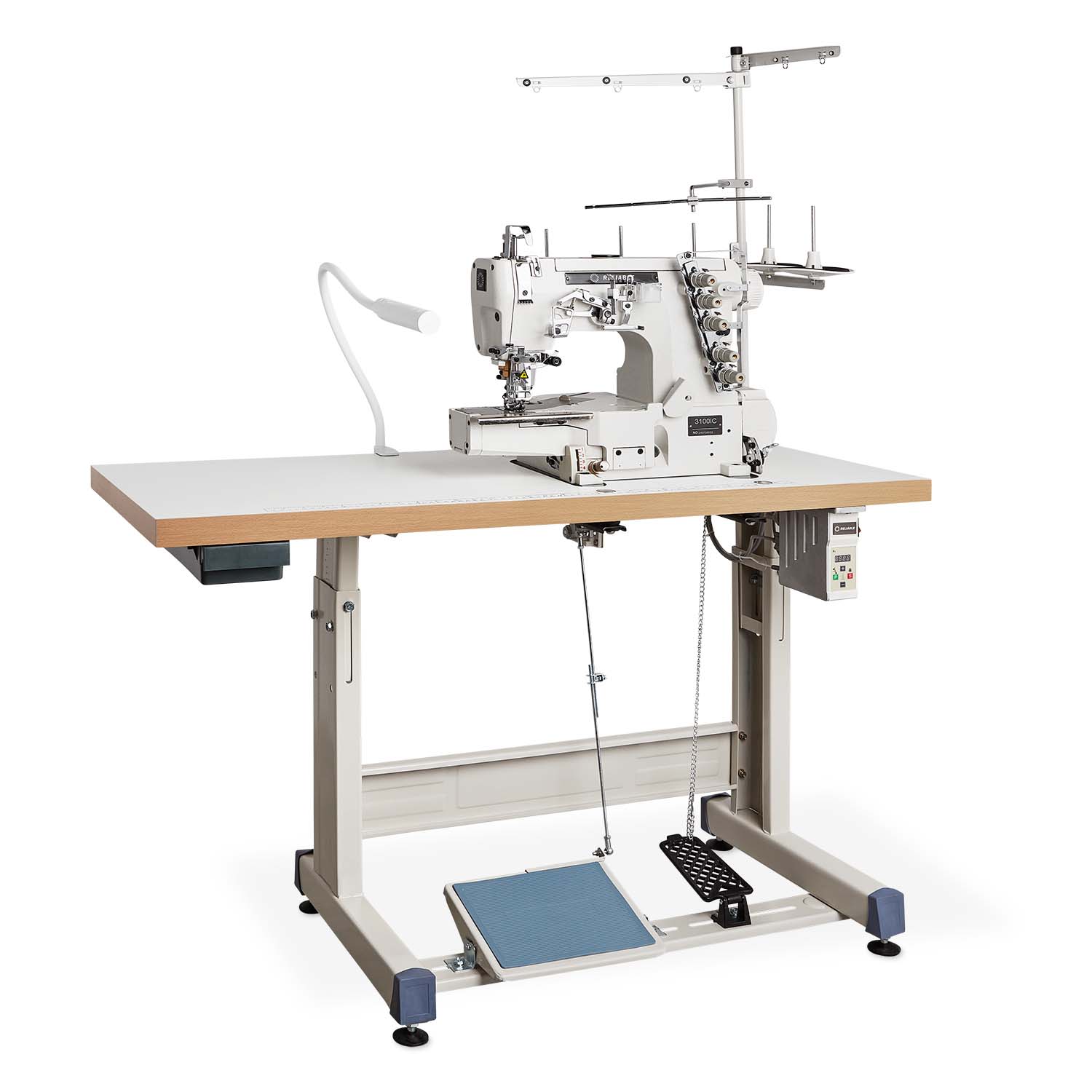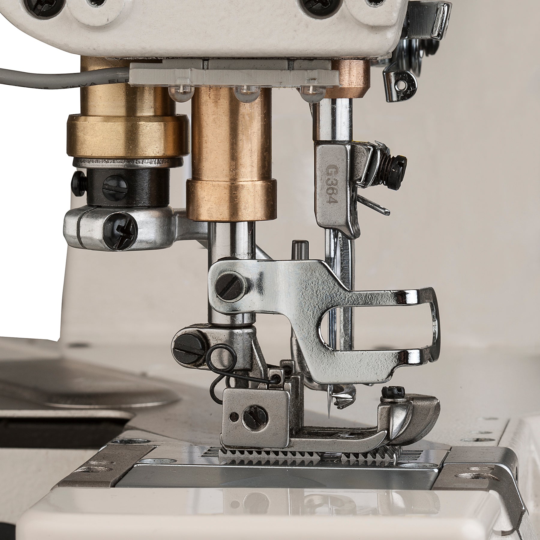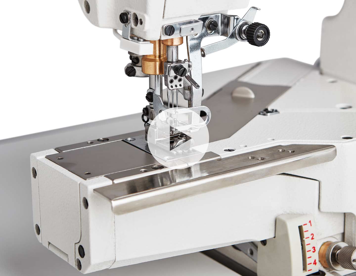 The 3100IC cylinder coverstitch machine with advanced Direct Drive technology provides the flexibility of using either 2 or 3 needles for hemming or for cover seaming. Direct Drive means there’s no more belt to replace and you get the most accurate speed control to fit every level of sewer’s needs. With easy to thread looper, no stain seal to trap and prevent oil from leaking, built-in release mechanism to allow for easy removal of the material and an eye and needle guard for your safety.