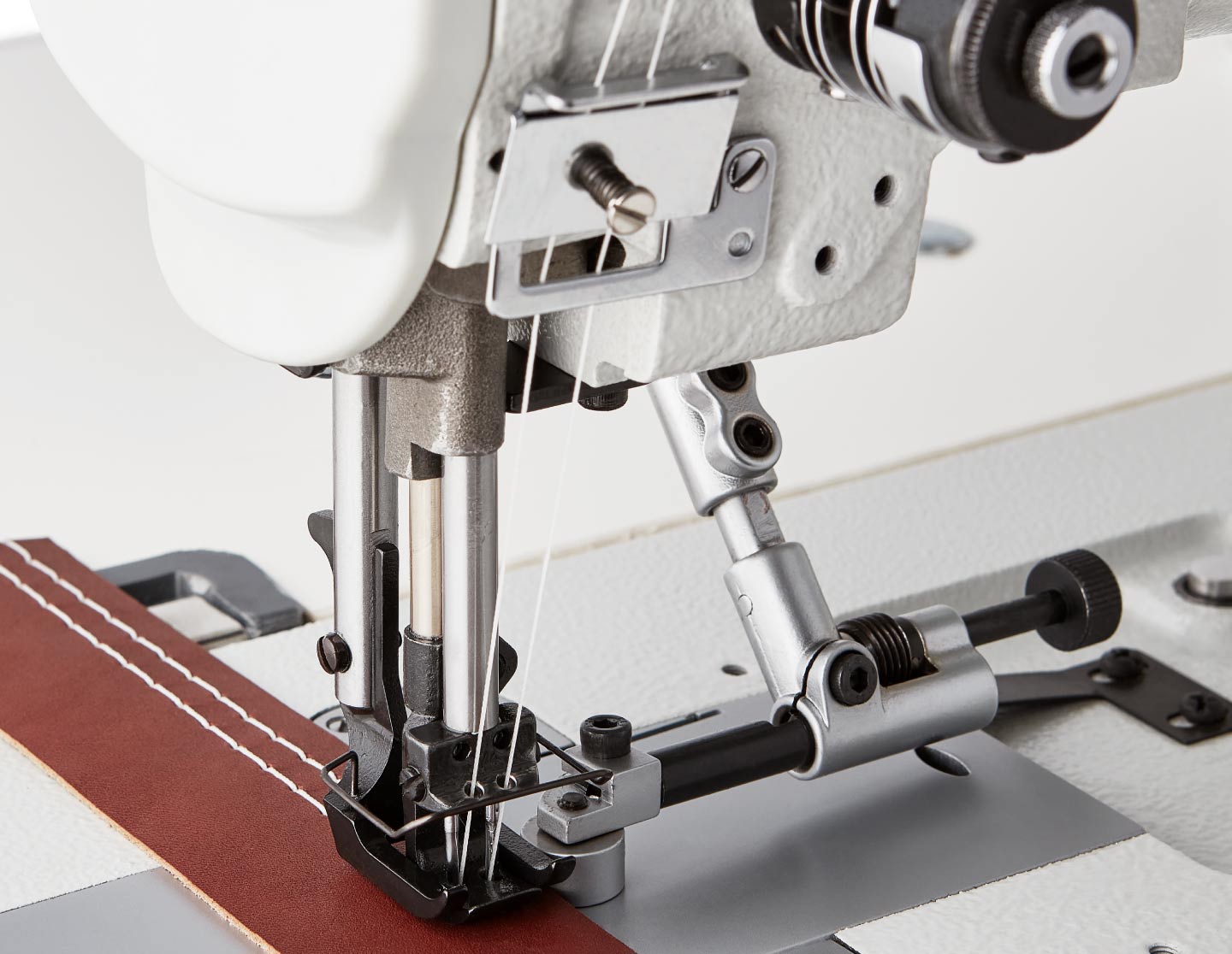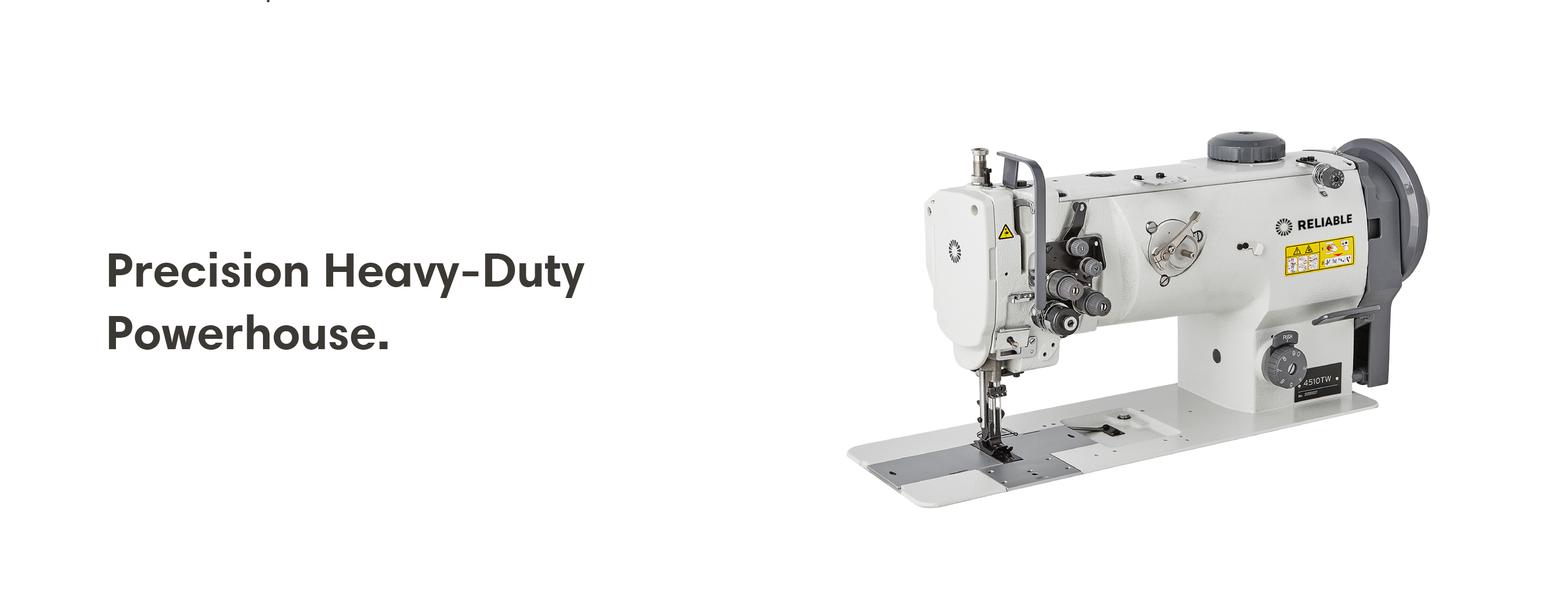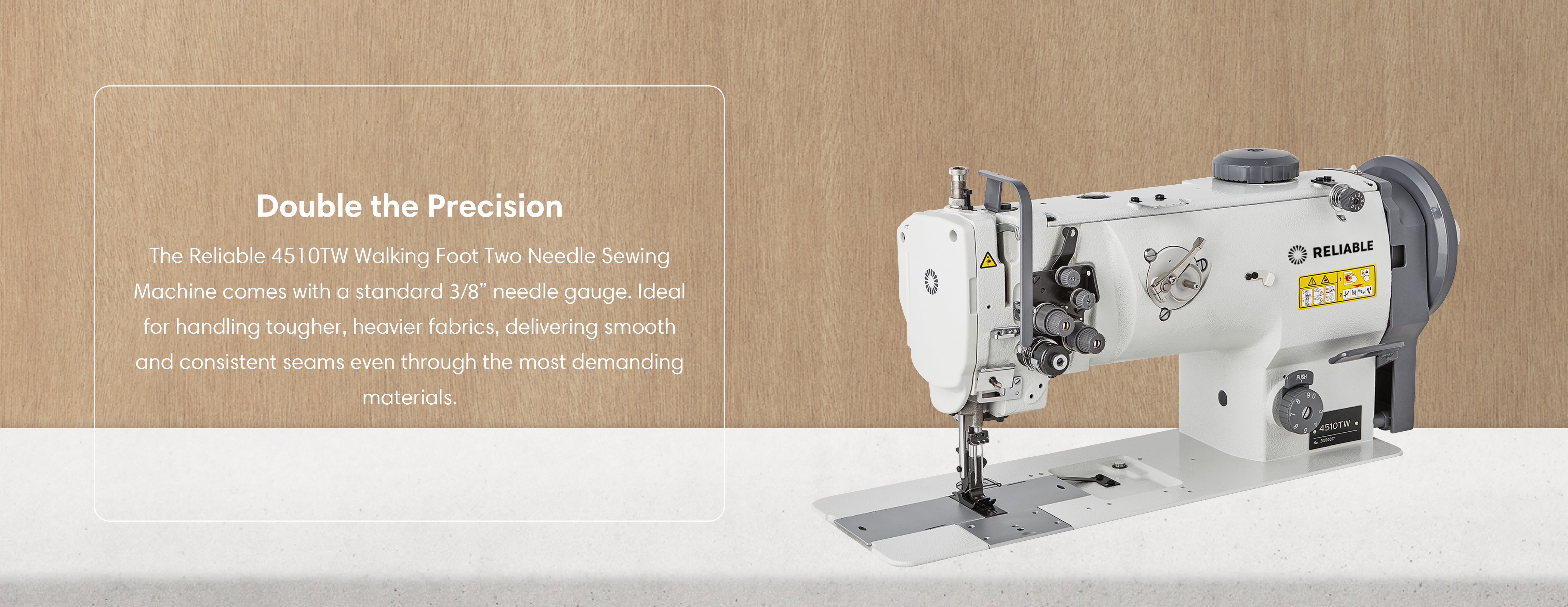 For heavier work, where two needles are required; we recommend the 4510TW walking foot lockstitch machine. Top and bottom feed and a higher foot lift allow it to sew from medium to heavyweight fabric.