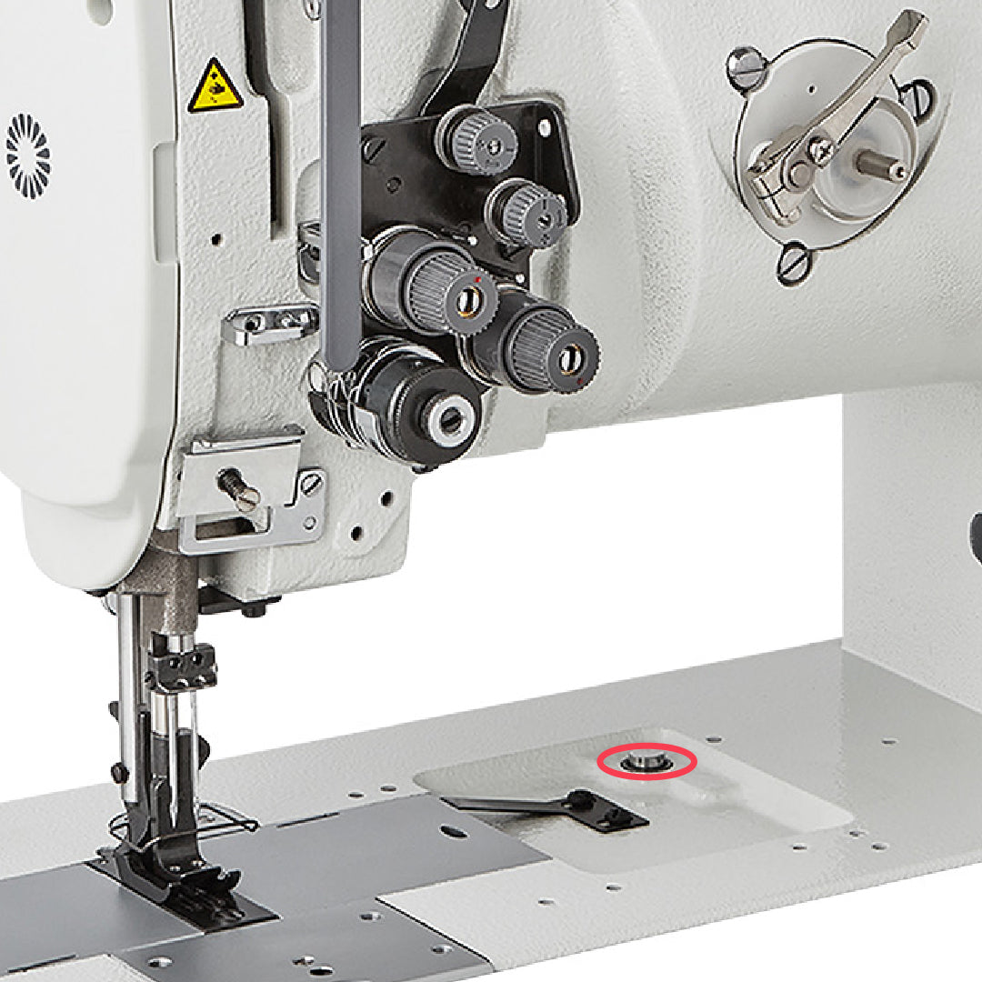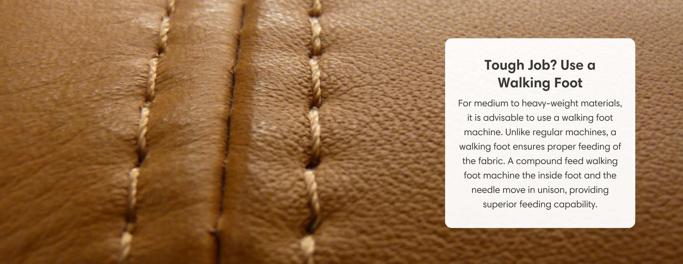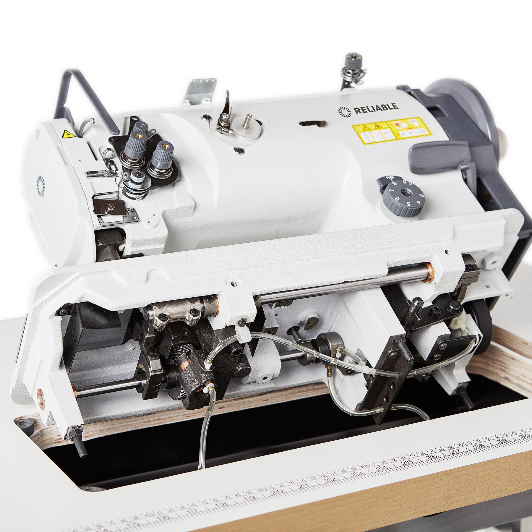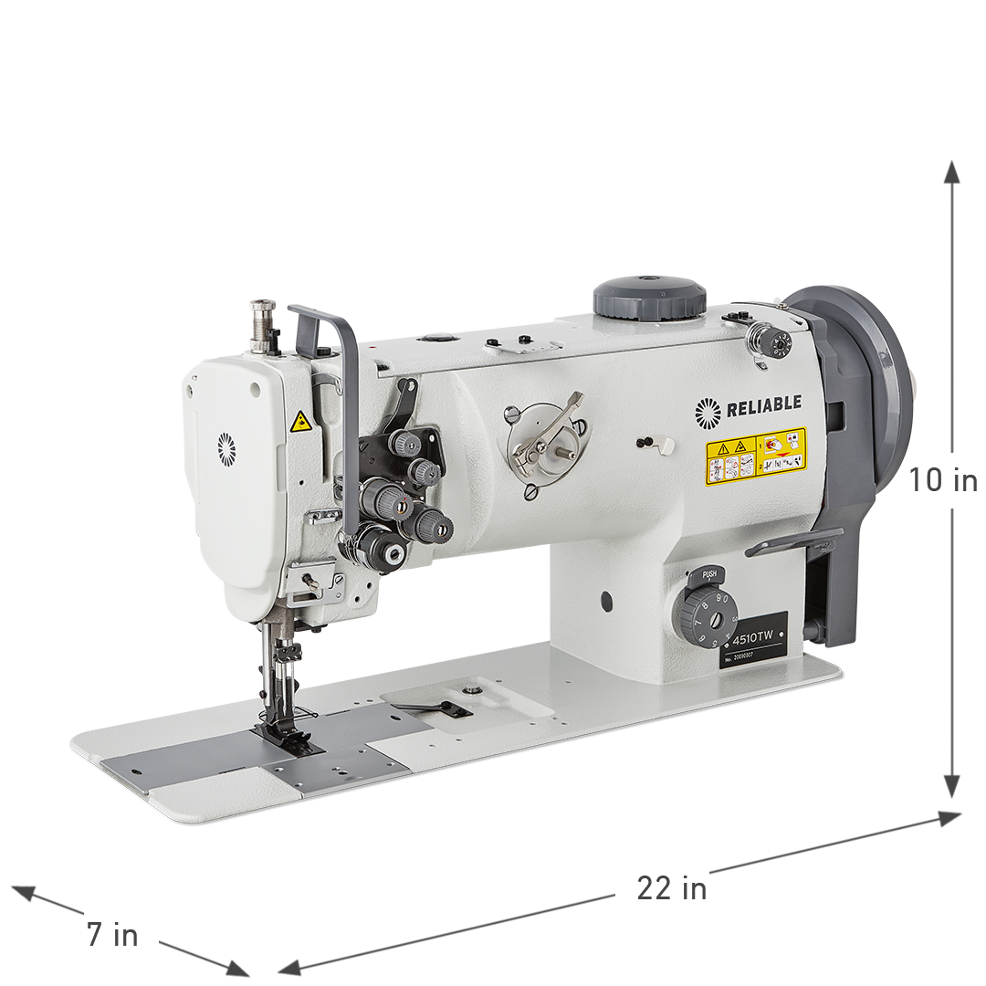 For heavier work, where two needles are required; we recommend the 4510TW walking foot lockstitch machine. Top and bottom feed and a higher foot lift allow it to sew from medium to heavyweight fabric.
