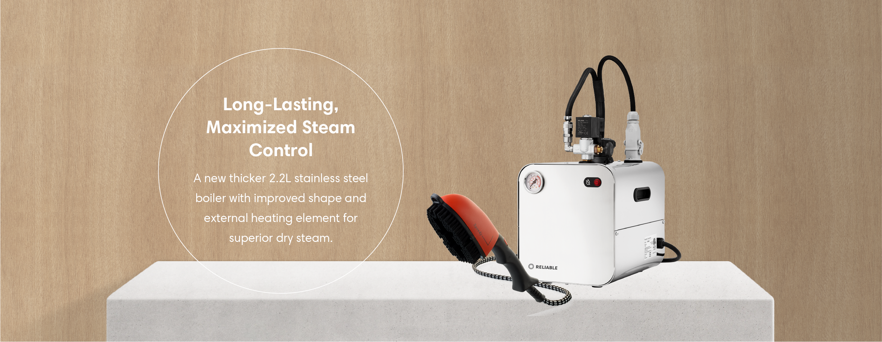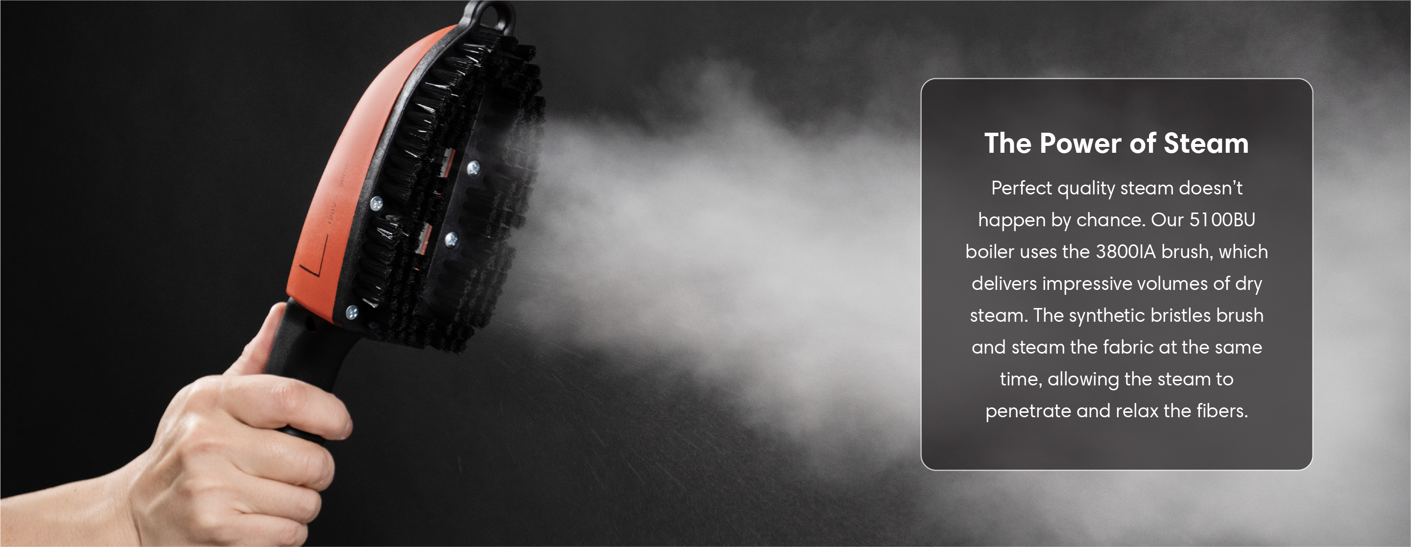 The 5100BU has an absolute capacity of 2.2L, uses our new external heating element system to optimize the amount of steam available to use and has an operating pressure of 3.5 bar / 50 P.S.I. for maximum steaming efficiency. Paired with the 3800IA ironing steam brush, it produces dry pressurized steam perfect for a wide variety of materials and applications. Proudly Made in Italy.