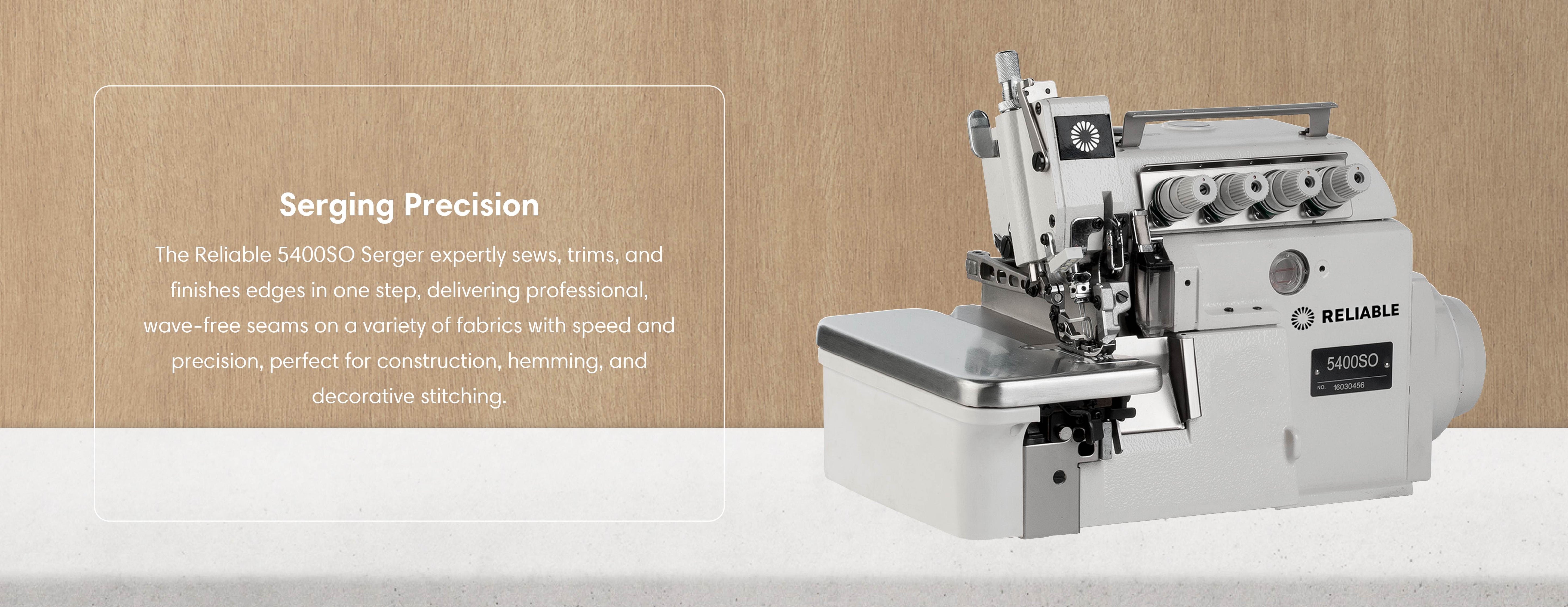 Is it called a serger or an overlock? Whatever you want to call it, the 5400SO direct drive two needle, 3/4 thread is going to put a smile on your face. How? This machine is quiet and operates smooth as butter. Oil leaking? Fuggetaboutit. These new machines are made to a tolerance that was impossible 10+ years ago. Made with precision and passion, the 5400SO is perfect for all kinds of wovens and knits, from light to medium weight fabrics.
