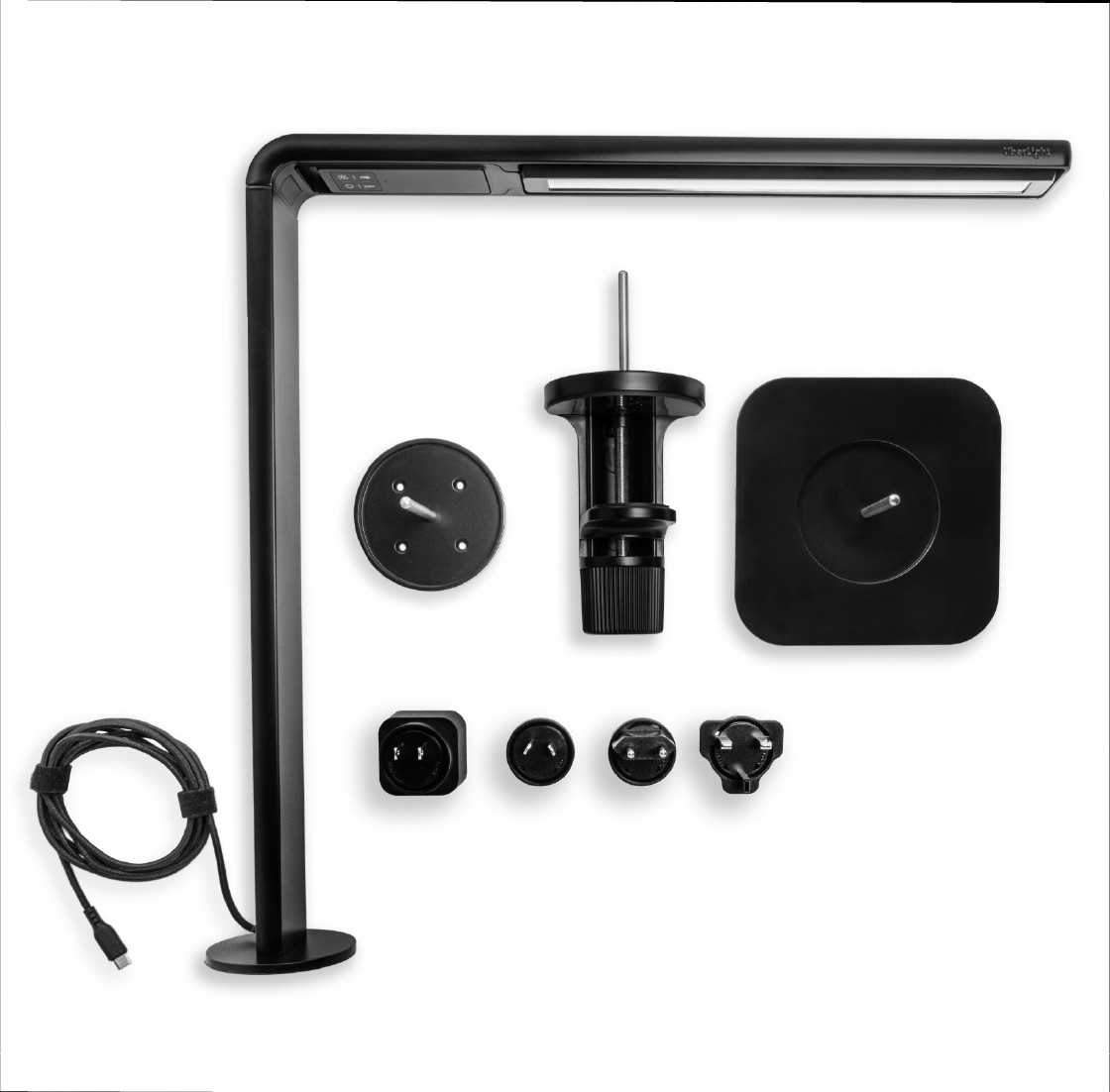 Power Cord: 6’ USB C with Universal Plug (NA, AU, UK, and EU)