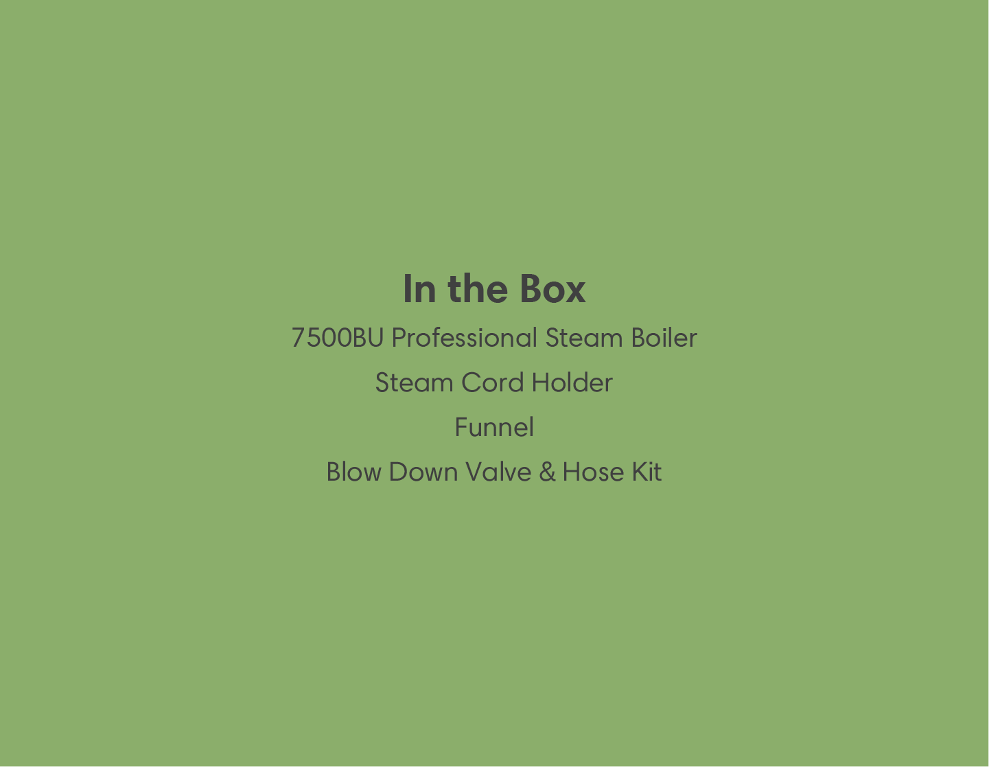 For ultimate flexibility, we present the 7500BU. The 7500BU features 2-solenoids, one for the 3000CD steam gun with a round nozzle and the other for the adjustable nozzle and foot pedal controller. If you can’t decide which steam delivery device will work best for you, the 7500BU will give you both.