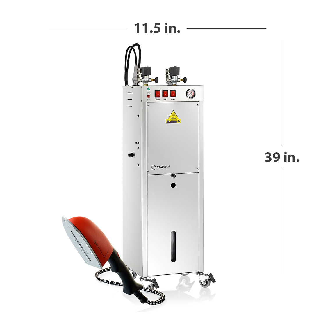 The 9000BU provides continuous steam for an unlimited amount of time when it is hooked up to a direct water line or with the turn of a lever with the available (internal) 5L boiler tank. Standard features are a heavy-duty contactor switch, blowdown valve, and heavy-duty casters. Paired with the 3900IA Steam Wand for all-in-one solution for fabric care. With a potent 400W heating element, effortlessly iron and steam simultaneously for professional results. Whether tackling wrinkles or softening fabrics, the 3900IA ensures efficiency and excellence in one sleek package. Elevate your garment care with this powerful and versatile tool.