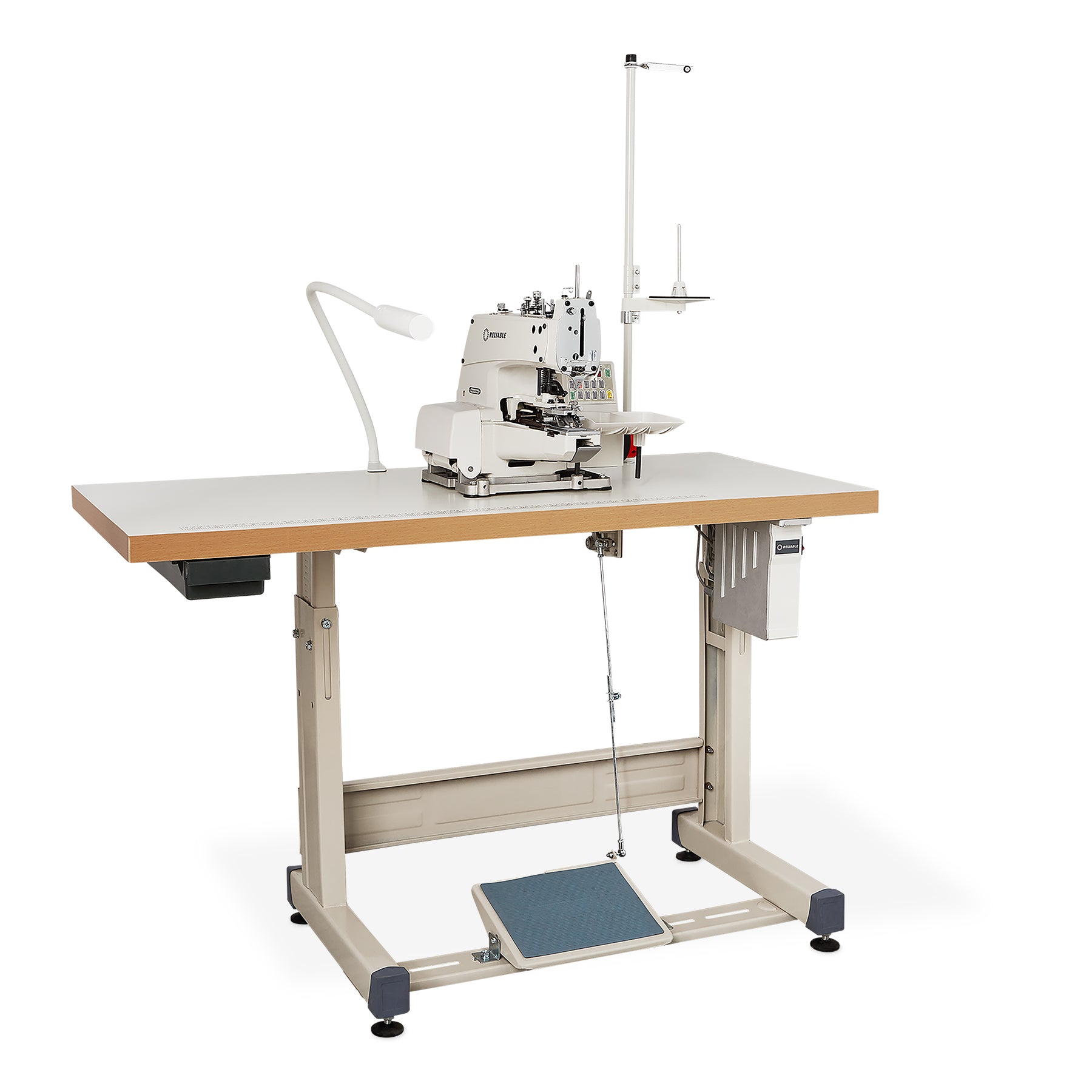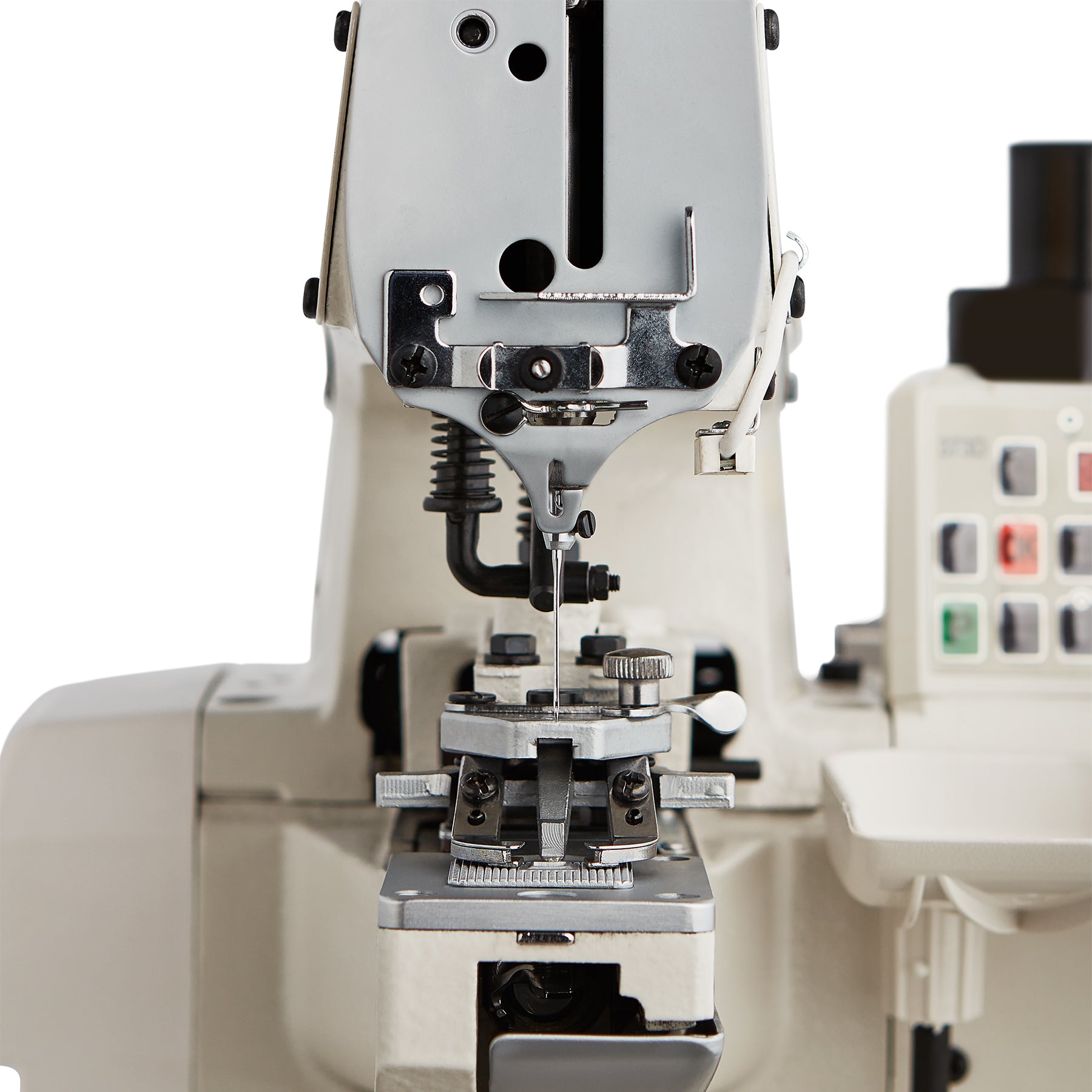 The 8100BS button sewing machine stands out with direct drive technology, offering a precise and quiet sewing experience. Quickly switch between 2 or 4-hole buttons with programmable speed and stitch count. Ideal for various apparel production, dry cleaning, and laundry applications.