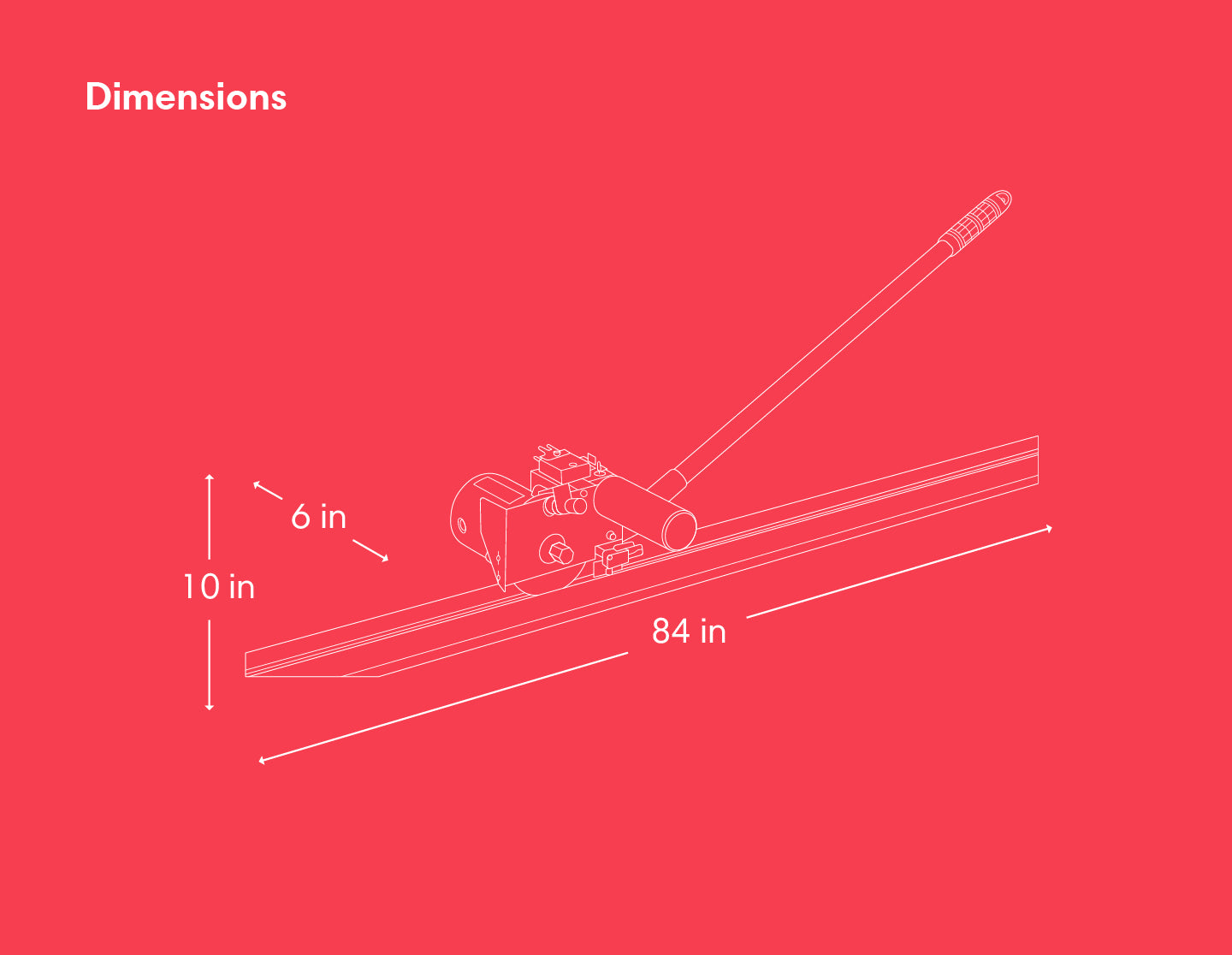 Everything you need is included. A heavy-duty 4” cutting head, a 84” track with lifter set and uprights with a piece goods bar for your roll of fabric. Simply roll out your material, turn the cutter head on, and using the handle push the cutting head along the track. It’s that simple. If you are using two people to cut, one on each side of a cutting table, chances are the 7000FE is the right machine for you. Everything you need to convert to a one-person operation is included.