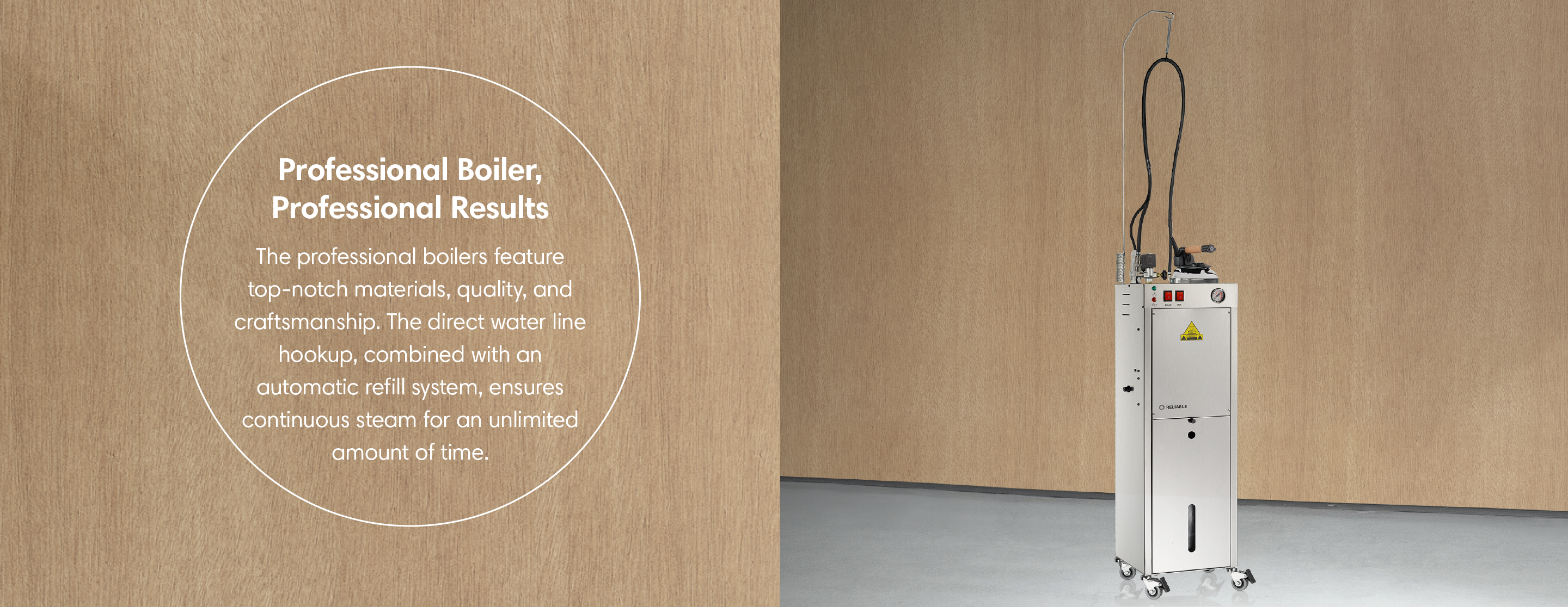 Paired with the 4100IR steam iron and its patented 30-chamber ISO™ Steam Technology, this system produces ultra-dry, pressurized steam that penetrates deep into fabric for crisp, clean results every time. Designed for continuous, all-day operation with automatic refill and blowdown capabilities, the 9000BU/4100IR is built to perform in demanding professional environments. Best of all, it operates using tap water—no distilled water required—making it as practical as it is powerful.