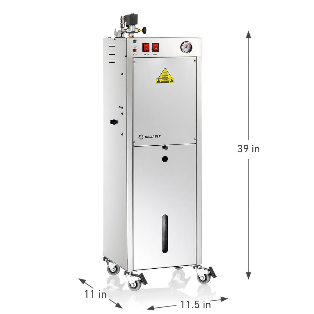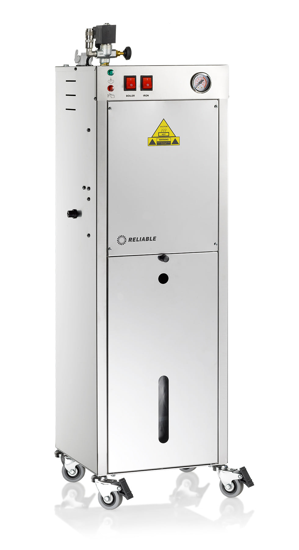The 9000BU provides continuous steam for an unlimited amount of time when it is hooked up to a direct water line or with the turn of a lever with the available (internal) 5L boiler tank. Standard features are a pressure control, heavy-duty contactor switch, blowdown valve, and heavy-duty casters. Pair with the 3800IA brush to deliver impressive volumes of very dry steam. The synthetic bristles brush and steam the fabric simultaneously, allowing the steam to penetrate and relax the fibers.
