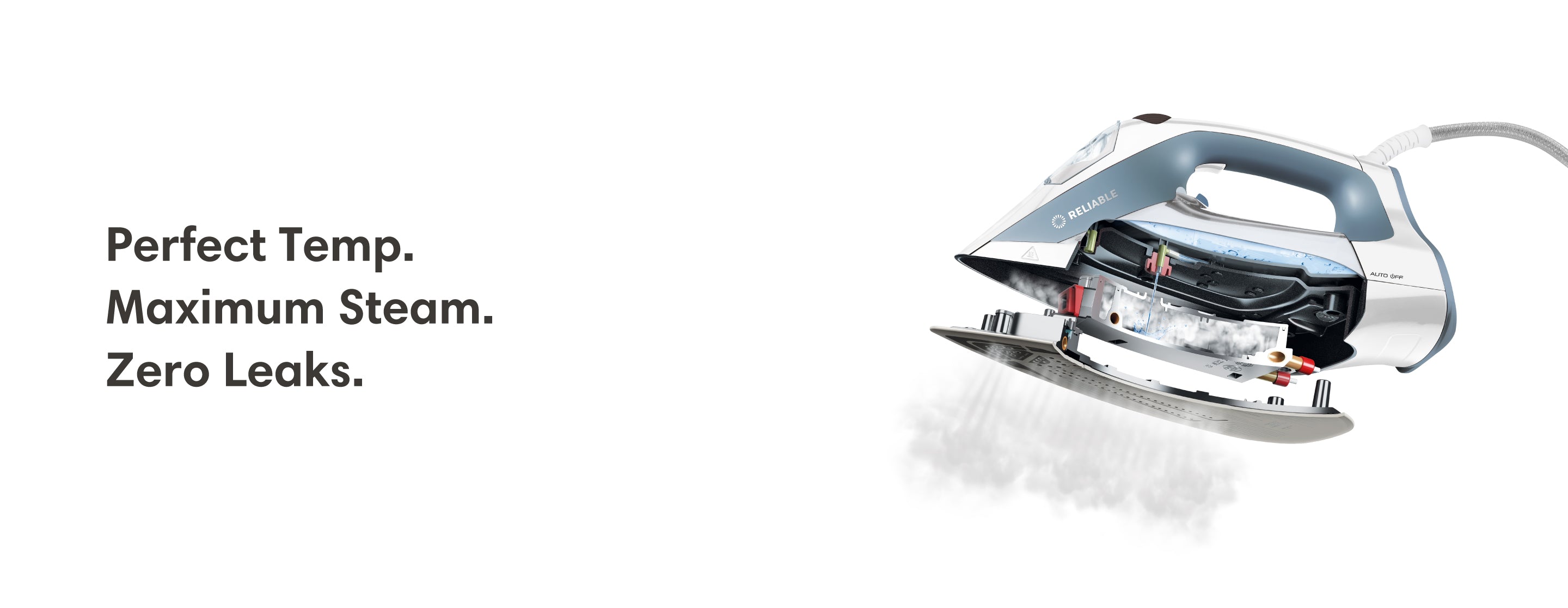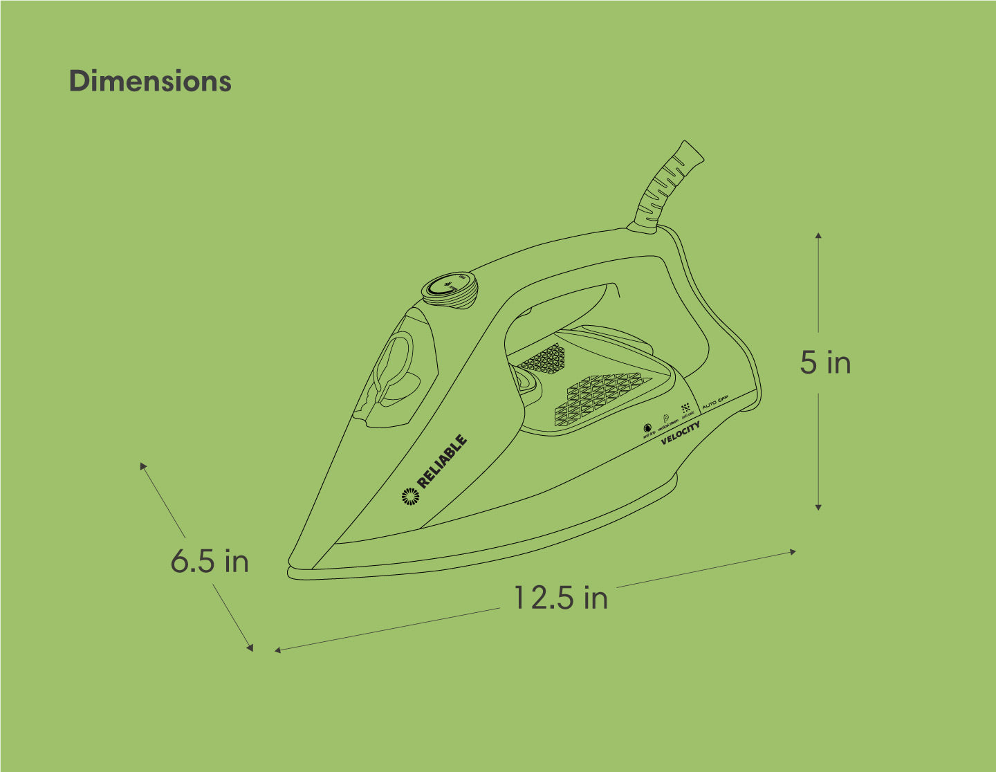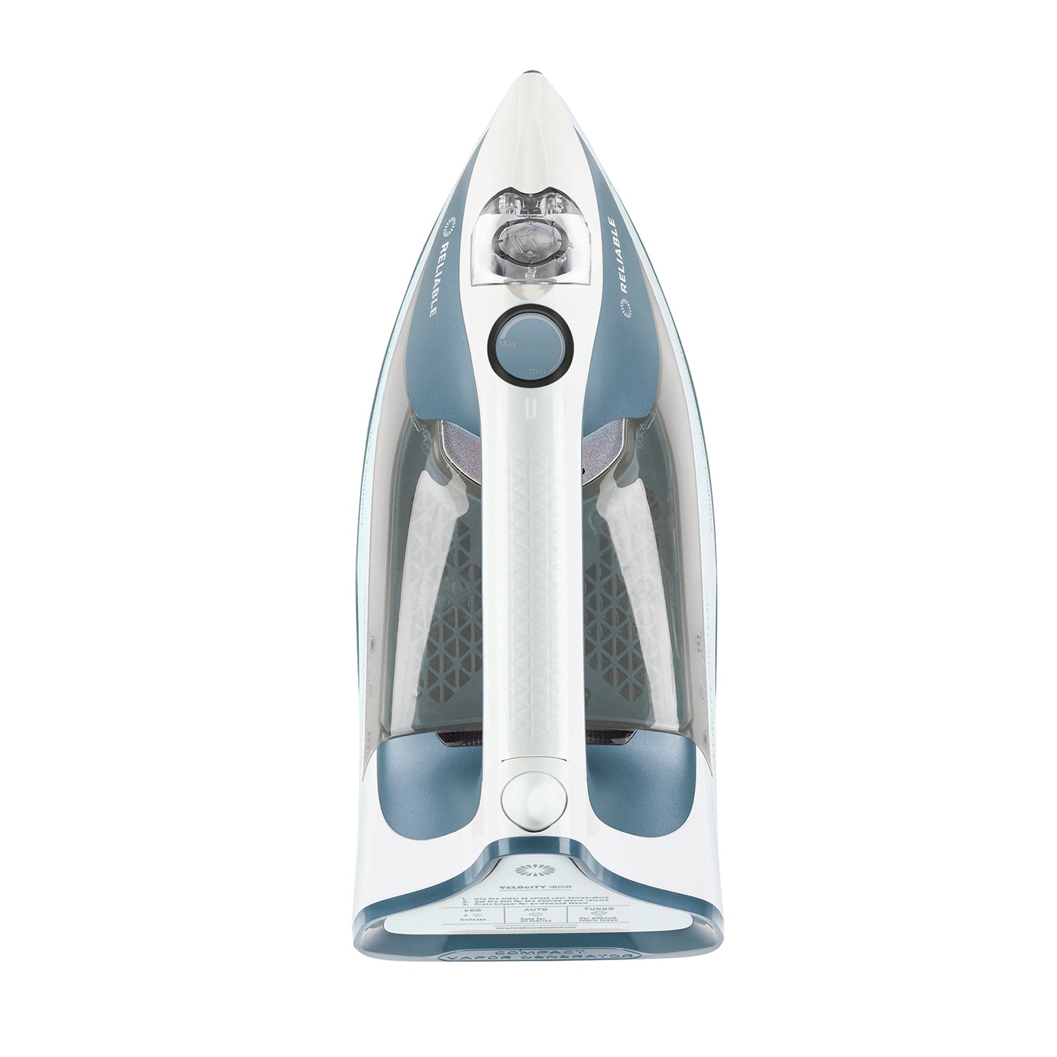 The Velocity 180IR boasts a patented built-in steam generator that ensures a continuous supply of steam without any leakage issues. Unlike traditional irons prone to leaks and spitting, Velocity irons utilize patented 2-heating element and micro-pump technology. This system pre-heats water and converts it into steam before it reaches the soleplate, guaranteeing consistent steam output even at low temperatures.