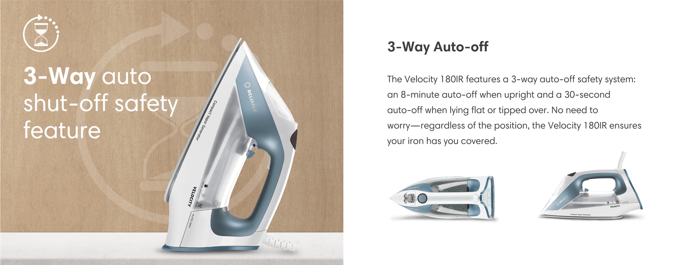 Equipped with three manual heat settings to Eco, Auto, and Turbo, the Velocity 180IR steam iron tackles stubborn wrinkles effortlessly while remaining gentle on delicate fabrics. Its eco and turbo settings offer versatility for various garment types.