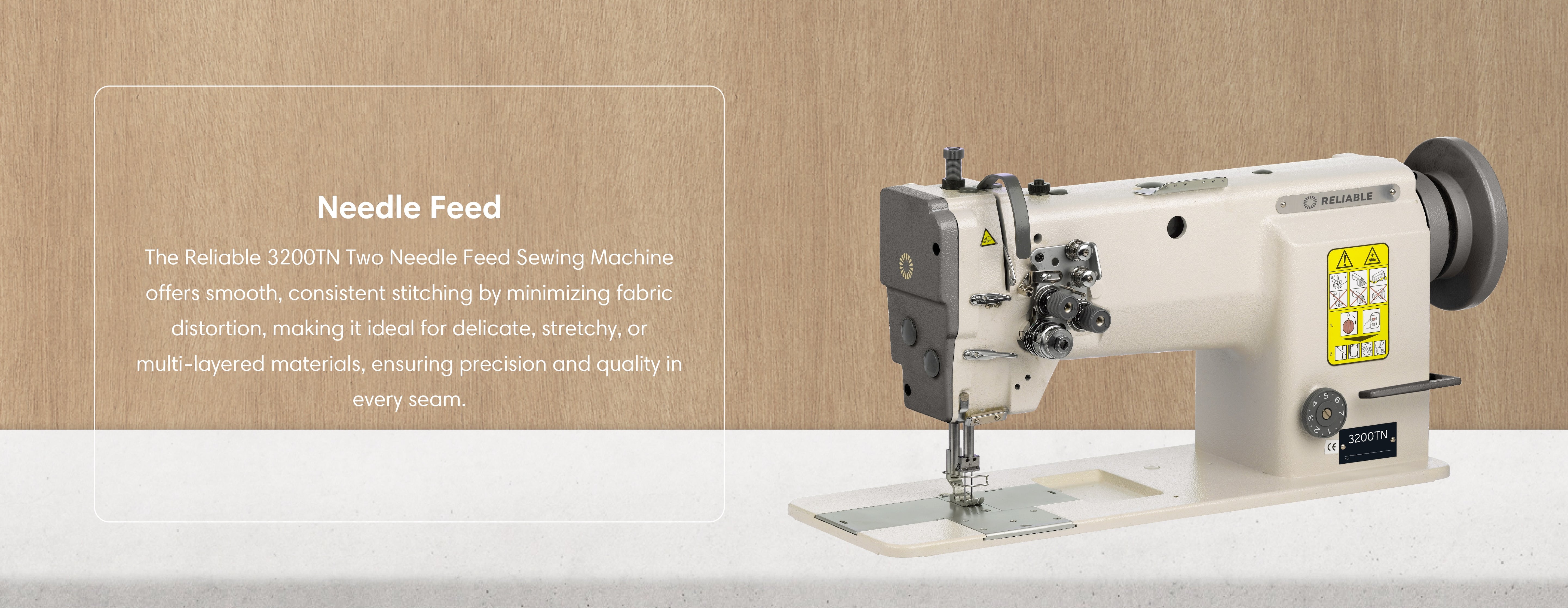 When is it time to get a needle feed sewing machine vs. a drop feed sewing machine. Typically, if you are sewing two ply’s of slippery fabric together or top stitching and you experience the fabric puckering you might be a candidate for the 3200TN two needle, needle feed machine. With the needle moving in unison with the feed dog, the added contact with the fabric can make puckering a thing of the past. We supply the 3200TN with the #1 SewQuiet servomotor.