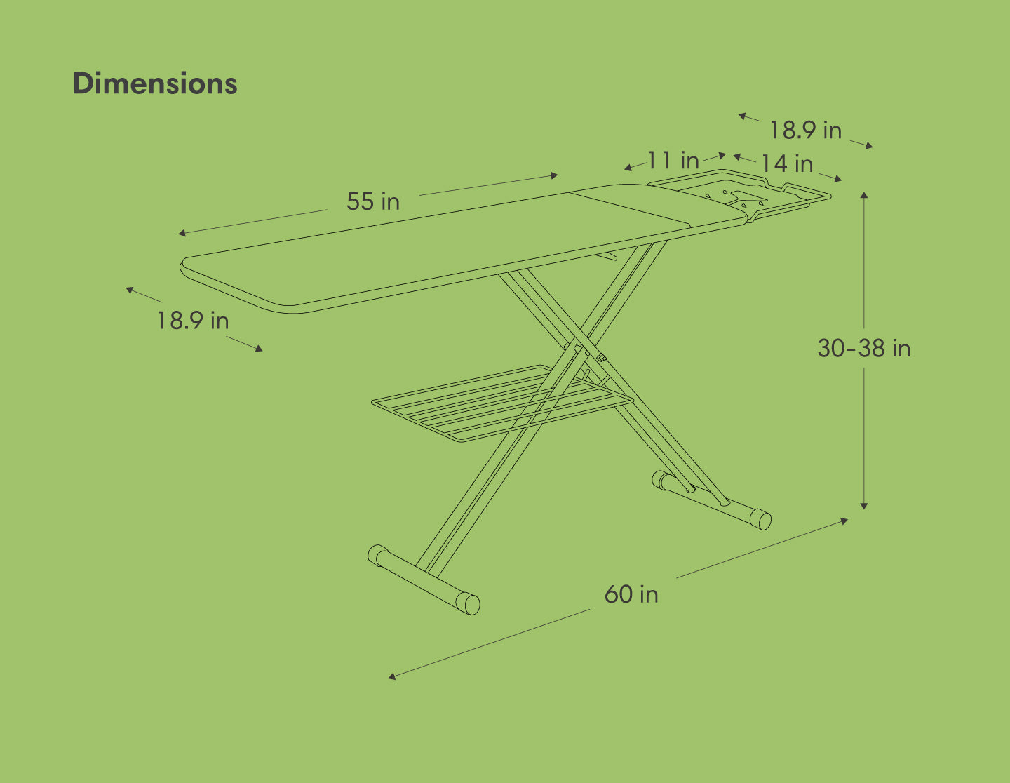 Includes Long Extension (55" x 19") for Expanded Pressing Area