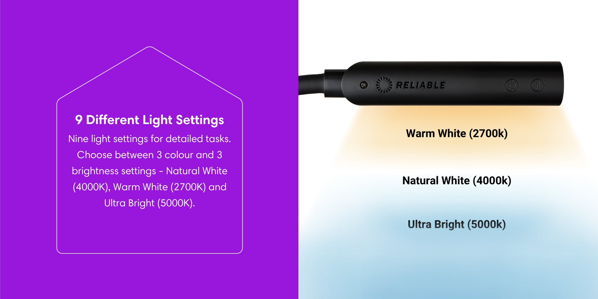 Offers nine different light settings for customized brightness.