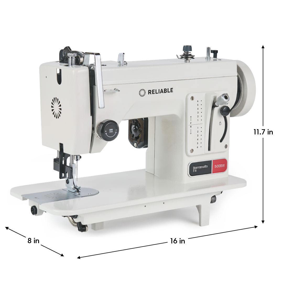Walking foot technology for smooth feeding of heavy to medium fabrics.