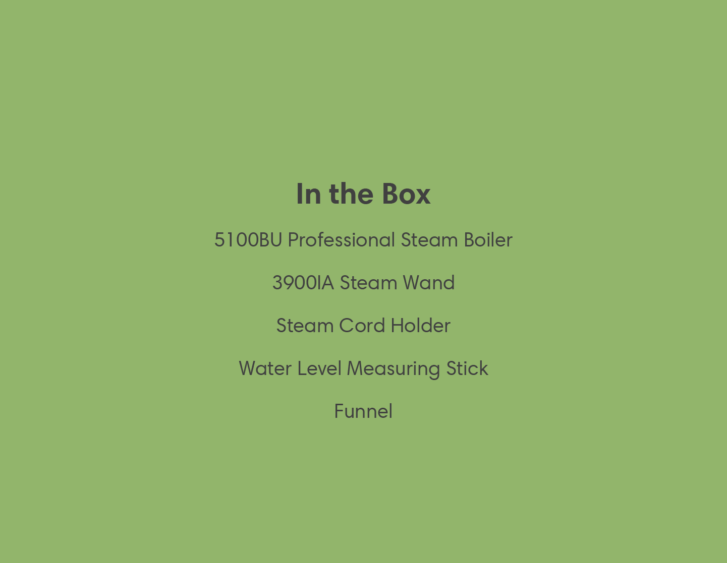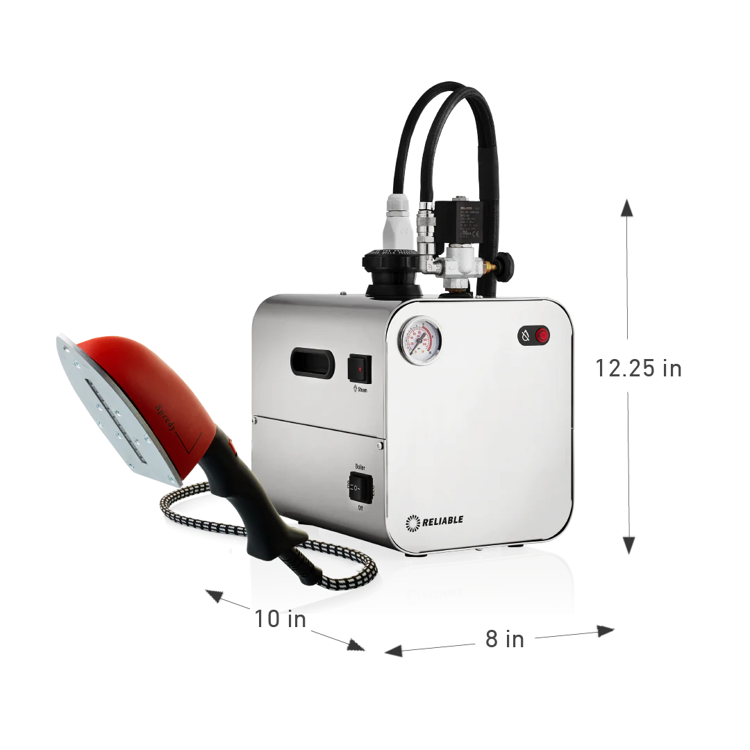 The 5100BU has an absolute capacity of 2.2L, uses our new external heating element system to optimize the amount of steam available to use and has an operating pressure of 3.5 bar / 50 P.S.I. for maximum ironing efficiency. Paired with the 3900IA ironing steam wand, it produces dry pressurized steam perfect for a wide variety of materials and applications. Proudly Made in Italy.