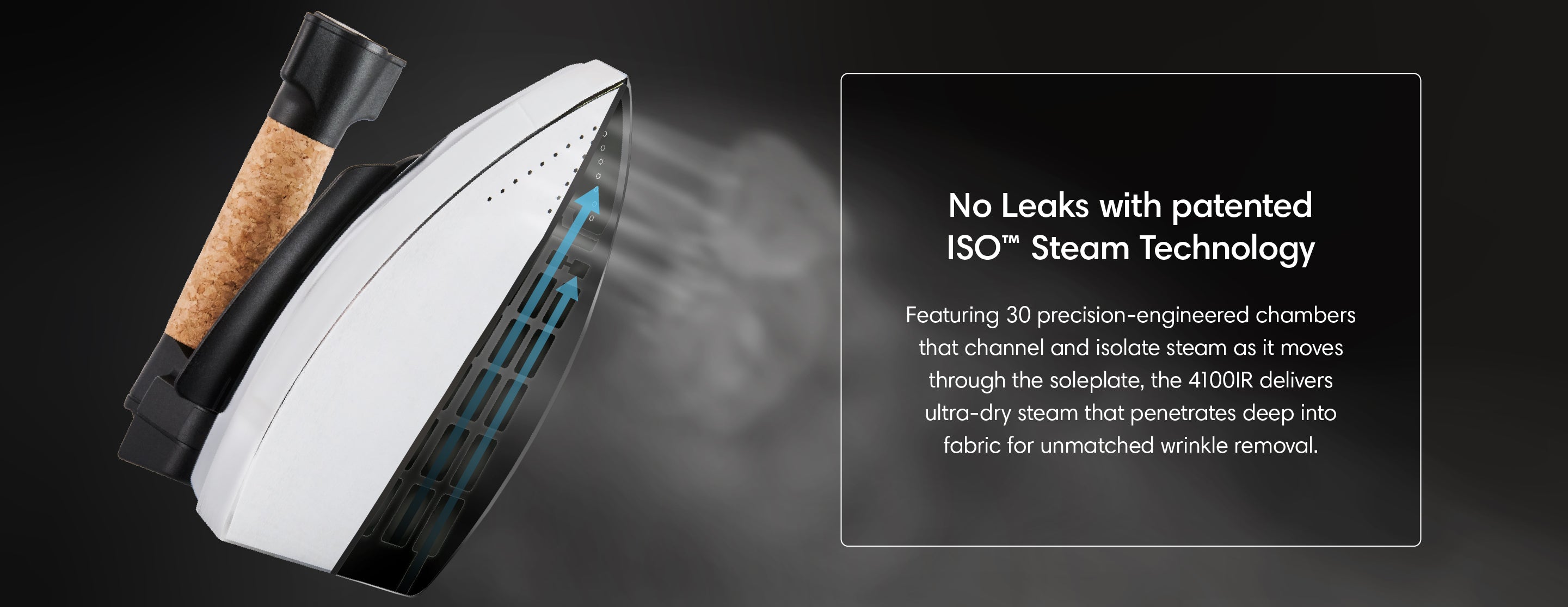 Paired with the 4100IR steam iron featuring our patented ISO™ Steam Technology, the 5100BU/4100IR delivers ultra-dry steam through a 30-chamber soleplate designed to deeply penetrate fabric for flawless, crisp finishes — every time. The 5100BU is for those who demand the very best performance but don't require more than 2.2L capacity.