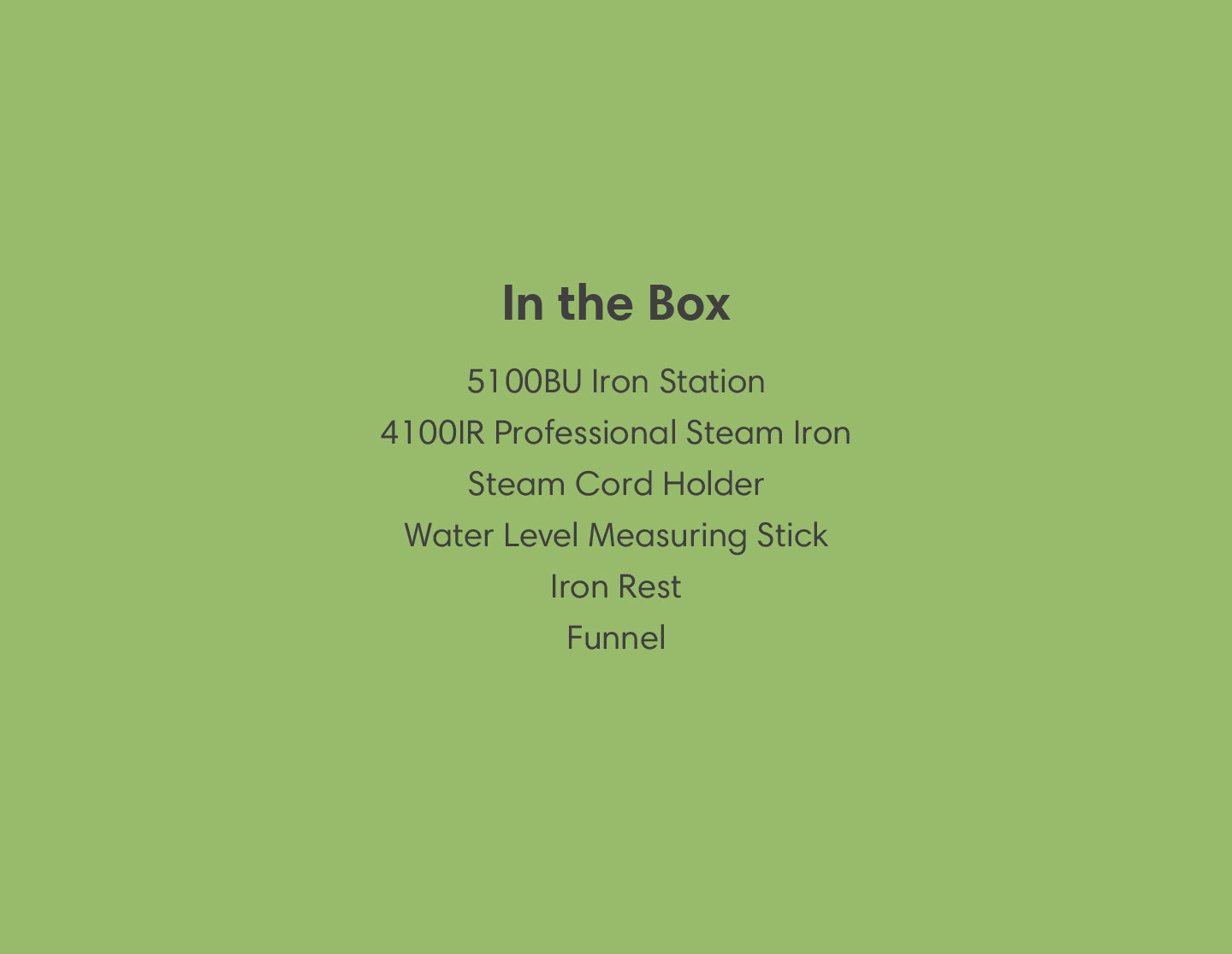 Equipped with 4100IRProfessional Steam Iron with 2.1m Steam Hose