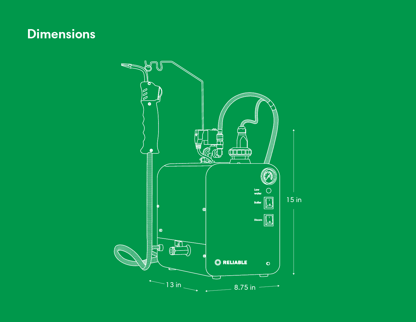 Features Low Water Indicator Light and Pressure Gauge