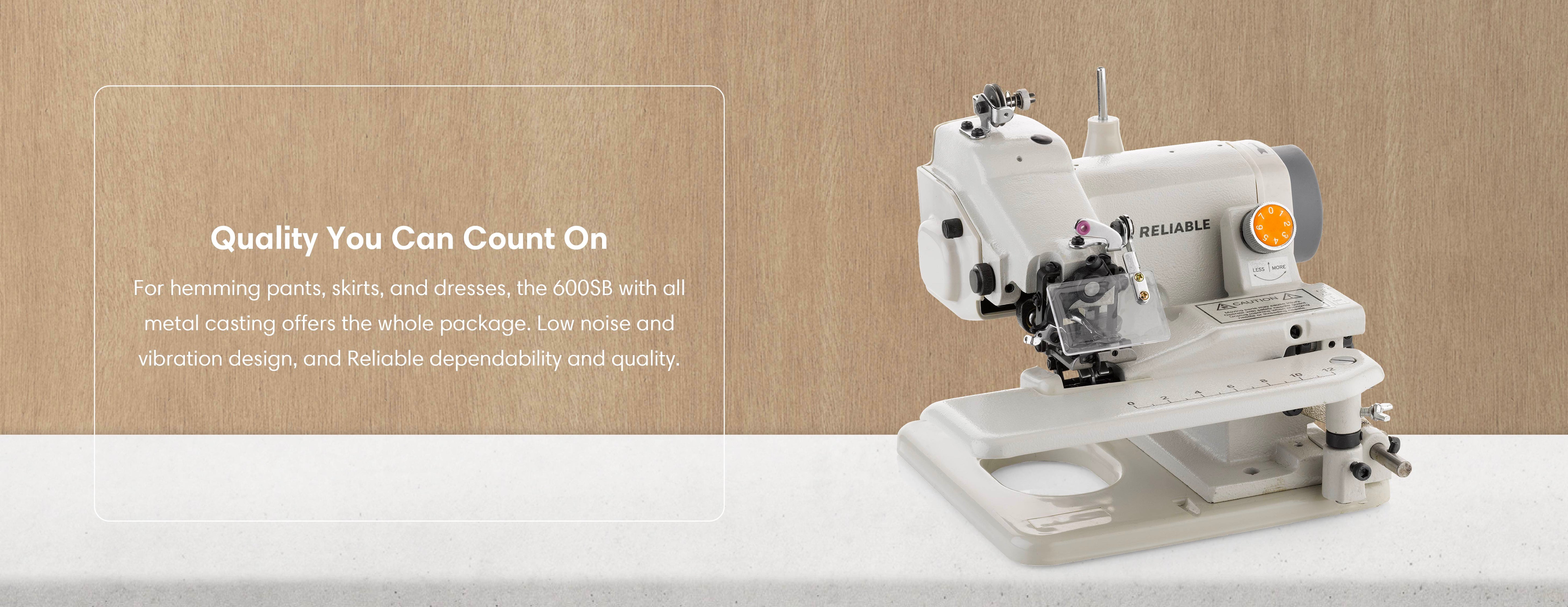 The Maestro 600SB portable blindstitch hemmer is quite the performer. Don’t let its size fool you. We’ve pulled out all the stops to give you everything you need for your home workshop, tailoring or dry cleaning workroom. Save time hemming pants, skirts and dresses. The skip stitch feature allows you adjust the stitching so important for finer material. The penetration dial quickly adjusts from all types of light to medium weight fabric.