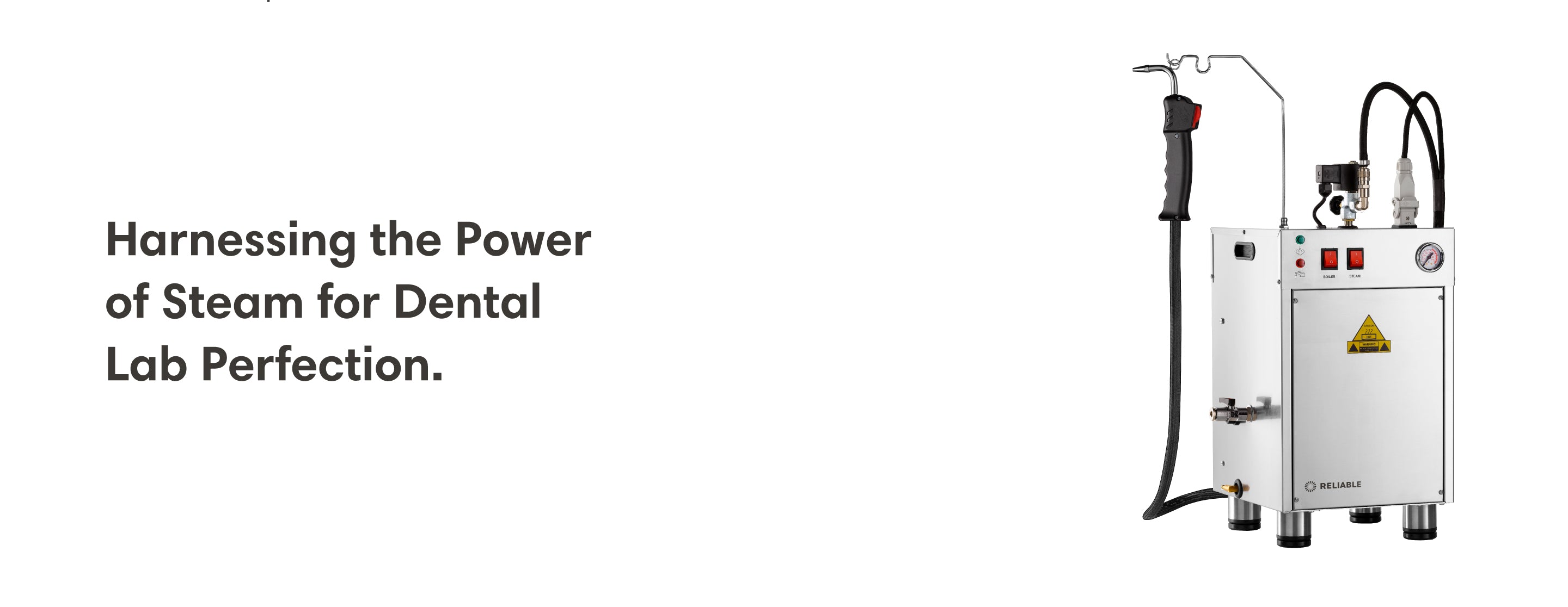 The 8000CD automatic steam cleaner is part of a new generation of highly flexibly, professional, Made in Italy dental lab steam cleaners. It’s raison d’être, is its ability to go from an external direct water feed to an external water supply with 5L boiler tank. This is done with the turn of a lever inside the unit. Everything else you expect from a Reliable steam cleaner is included; heavy-duty contactor switch, blowdown valve, and 3000DA steam gun.