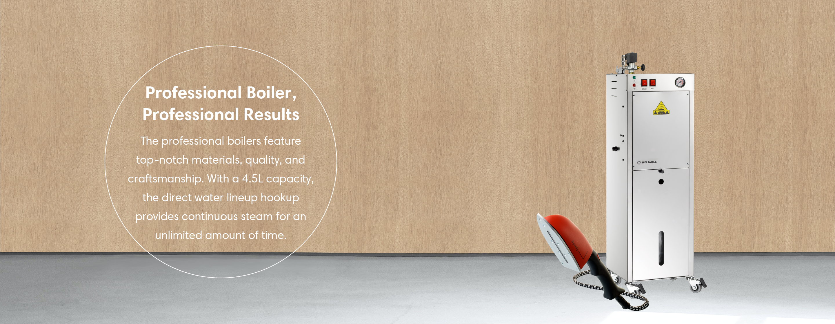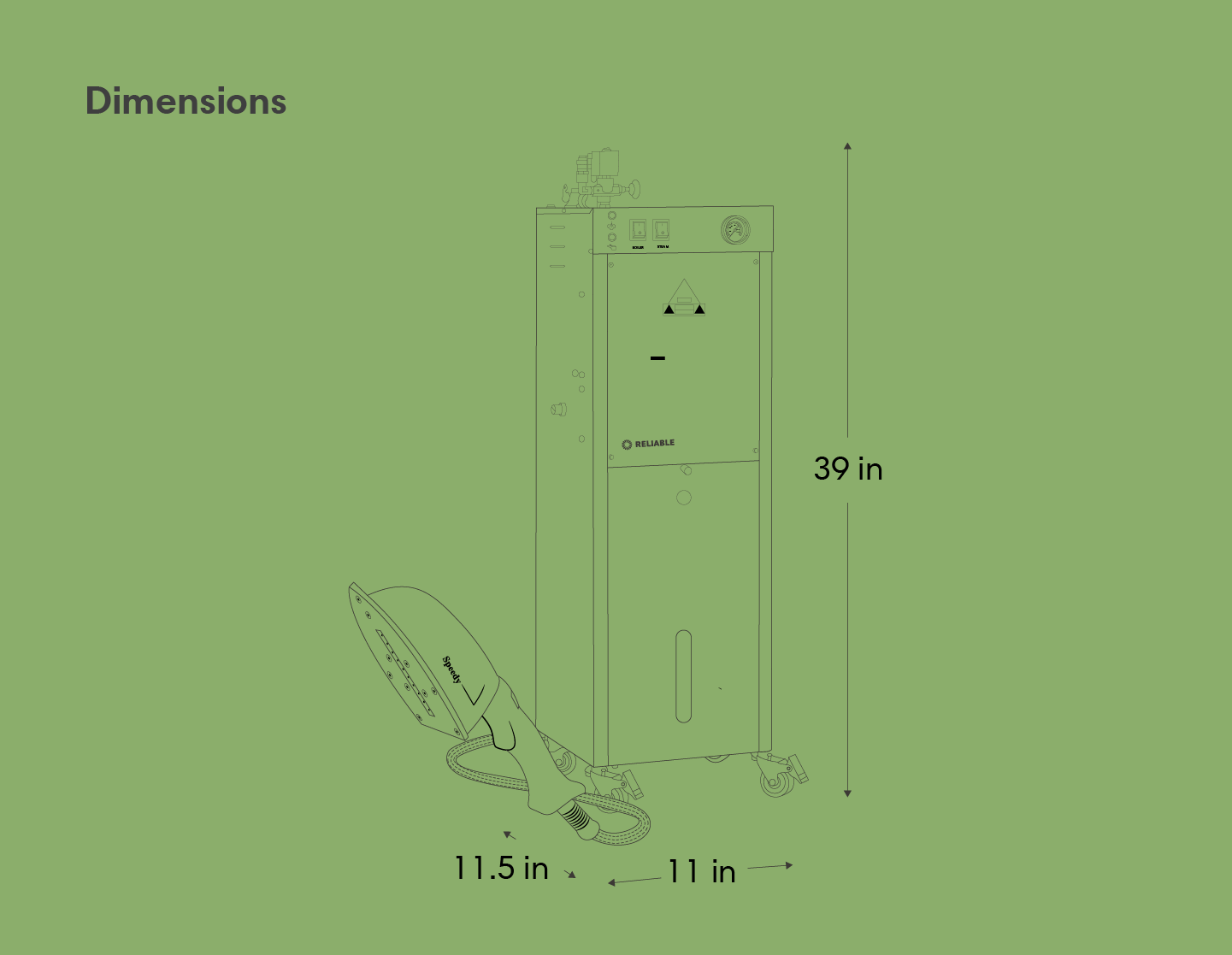 The 9000BU provides continuous steam for an unlimited amount of time when it is hooked up to a direct water line or with the turn of a lever to the provided separate 5L water container. Standard features are a heavy-duty contactor switch, blowdown valve, and heavy-duty casters. Paired with the 3900IA ironing steam wand, it produces dry pressurized steam perfect for a wide variety of materials and applications. Proudly Made in Italy.
