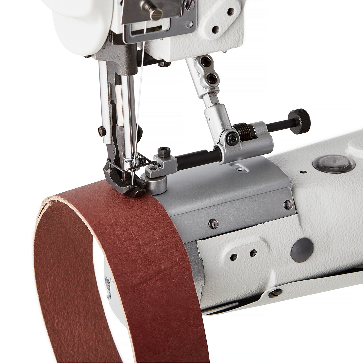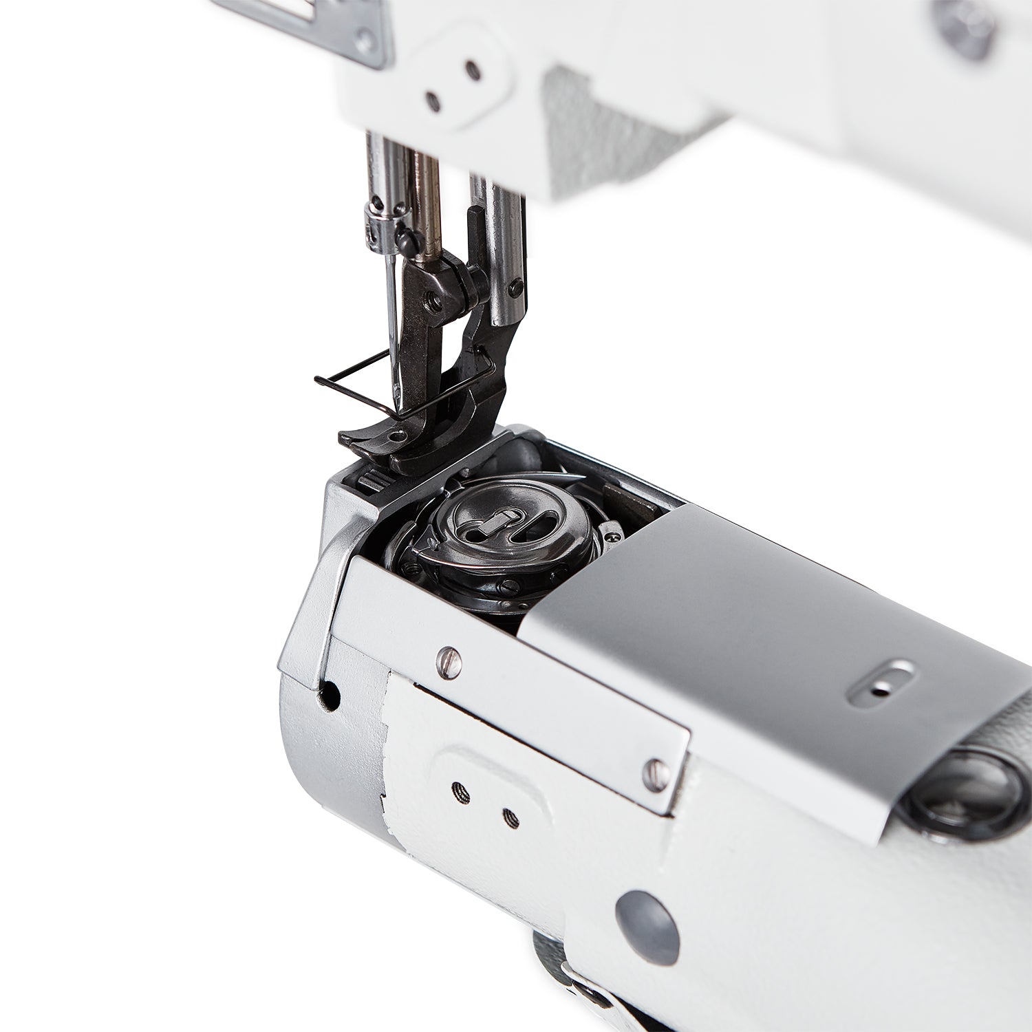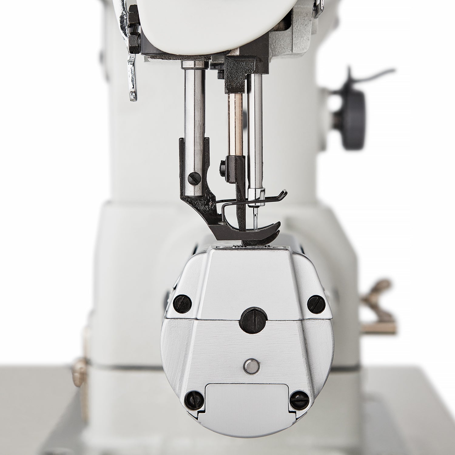Our flagship cylinder walking foot, compound feed sewing machine is built tough for sewing cushions, bags, heavy canvas, and more. It features a large take-up mechanism with dual tension adjustments, a convenient drop-in bobbin, a synchronizer for the SewQuiet 6000SM motor for easier corner stitching, a safety clutch mechanism, and a built-in bobbin winder.