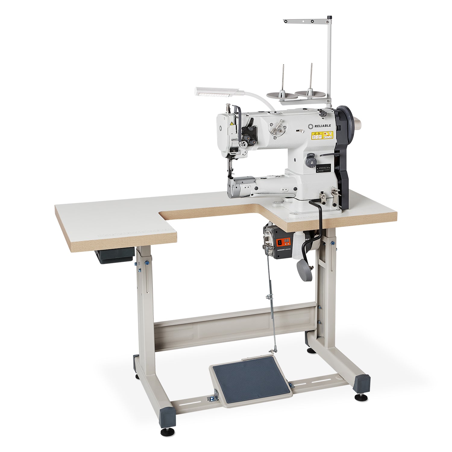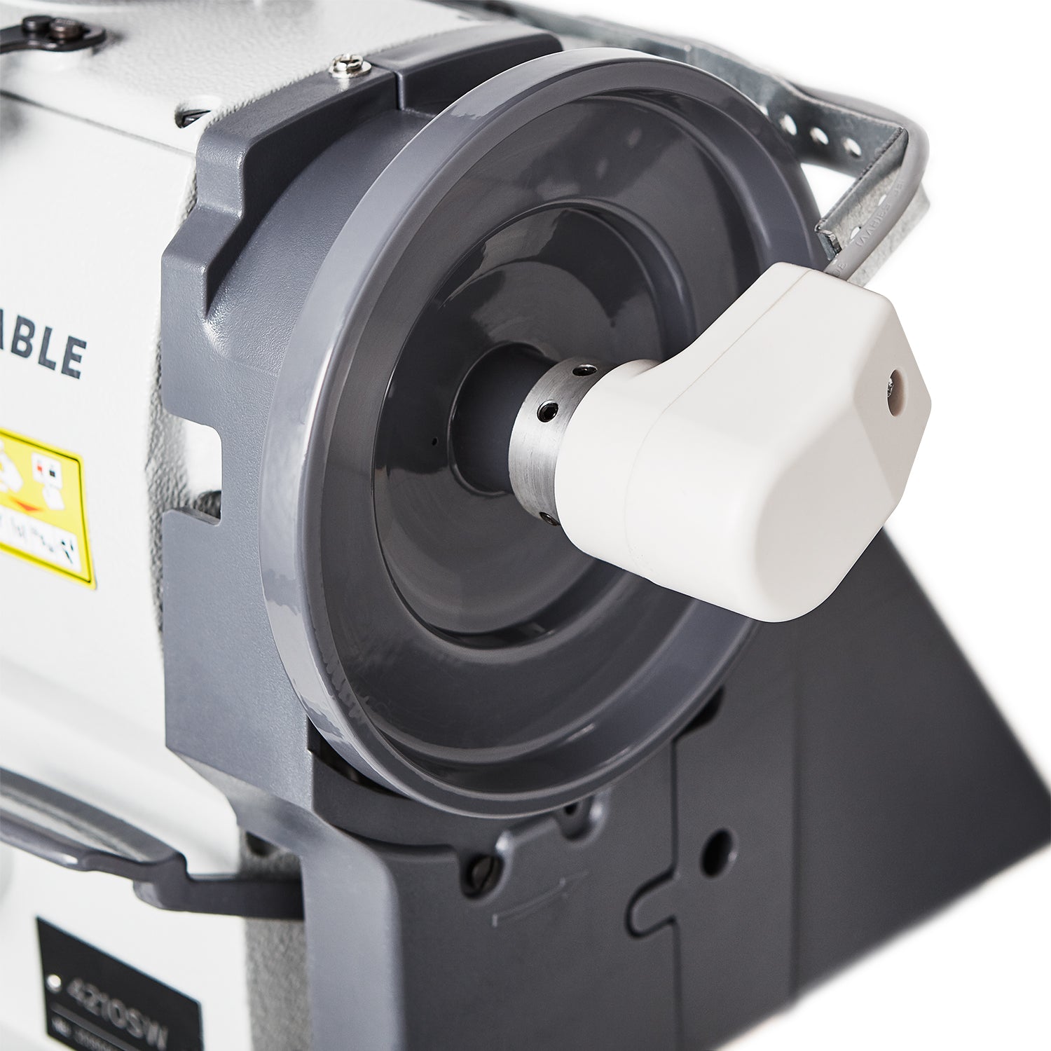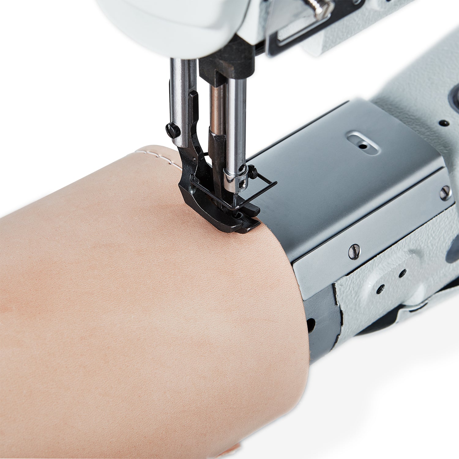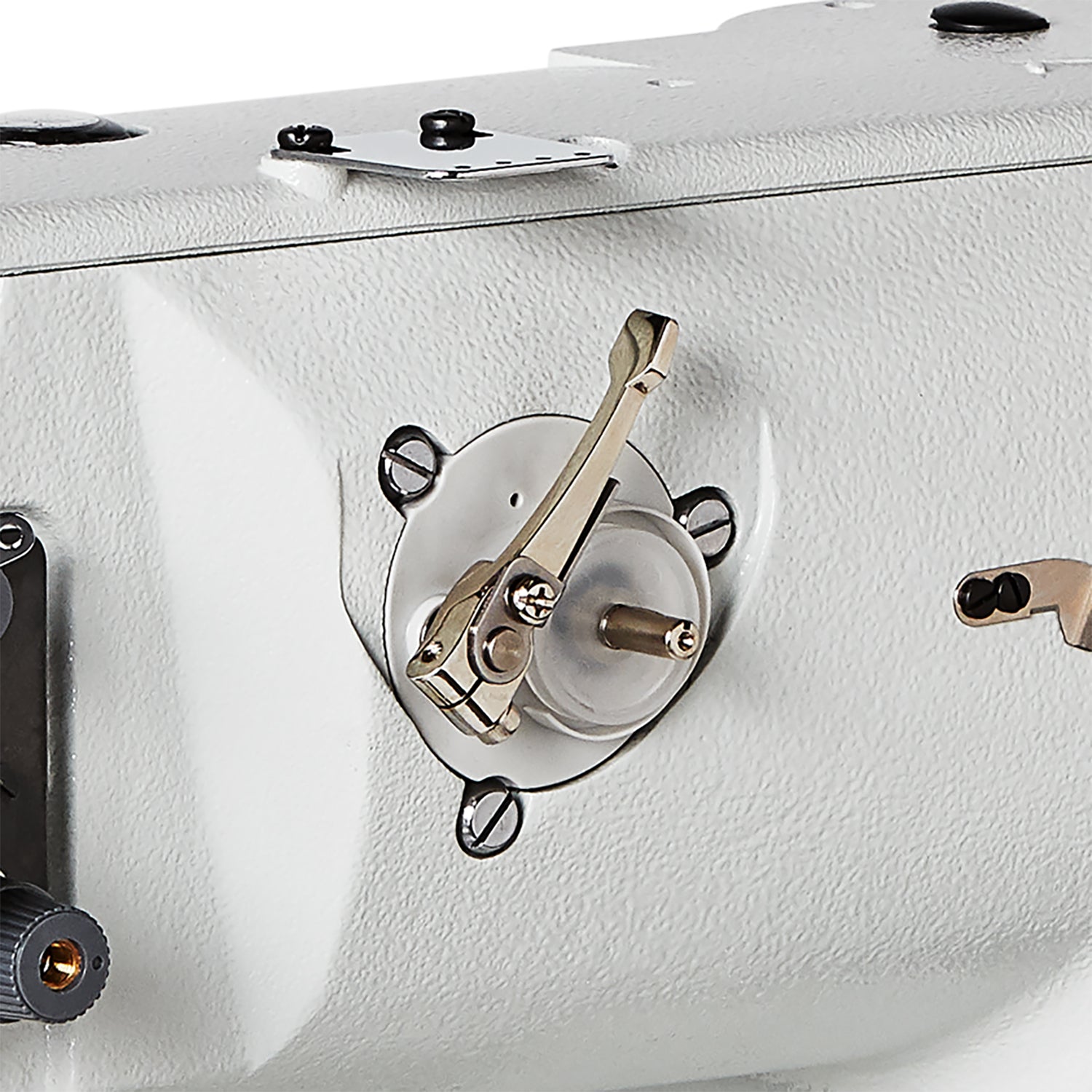 Our flagship cylinder walking foot, compound feed sewing machine is built tough for sewing cushions, bags, heavy canvas, and more. It features a large take-up mechanism with dual tension adjustments, a convenient drop-in bobbin, a synchronizer for the SewQuiet 6000SM motor for easier corner stitching, a safety clutch mechanism, and a built-in bobbin winder.